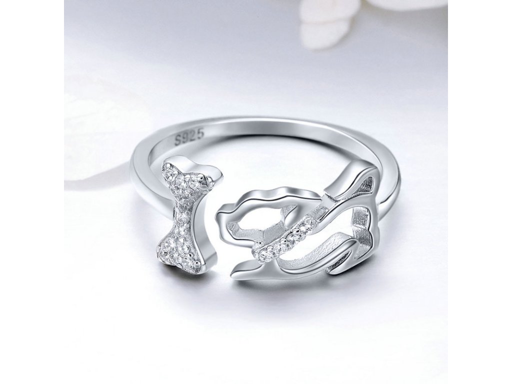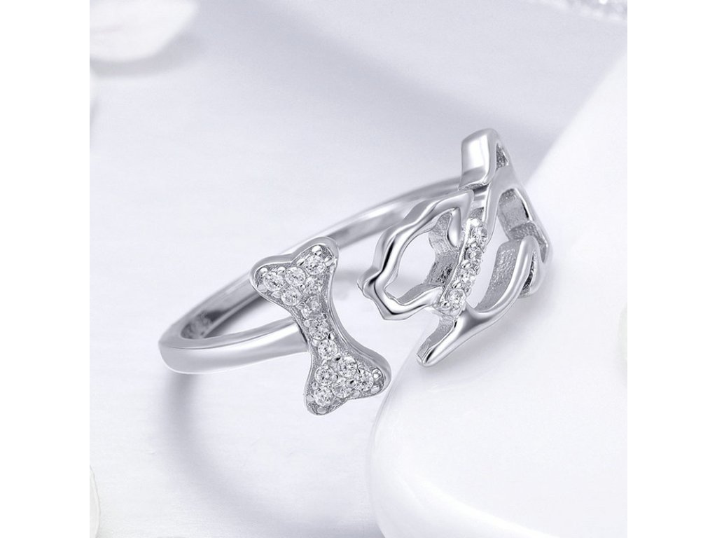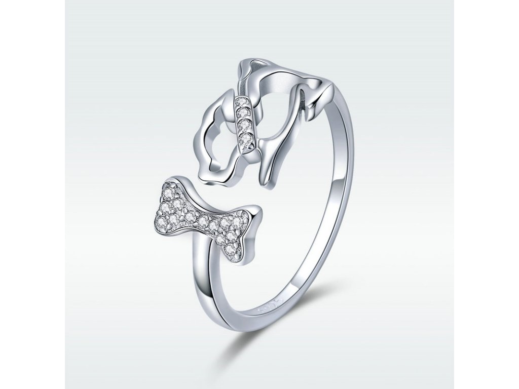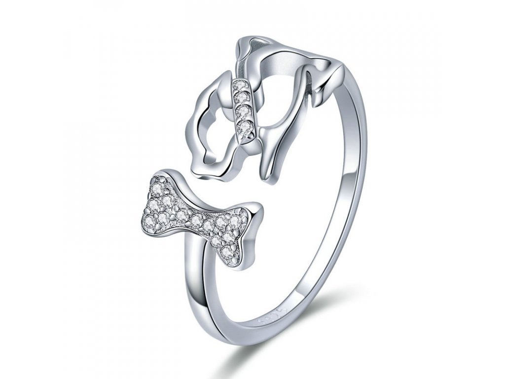 - Luxusný a prepracovaný strieborný prsteň v dizajne milovaného psíka a kocky zdobený zirkónmi. Originálny dizajn prsteňa, kvalitné spracovanie a materiál, ručne dohotovené.