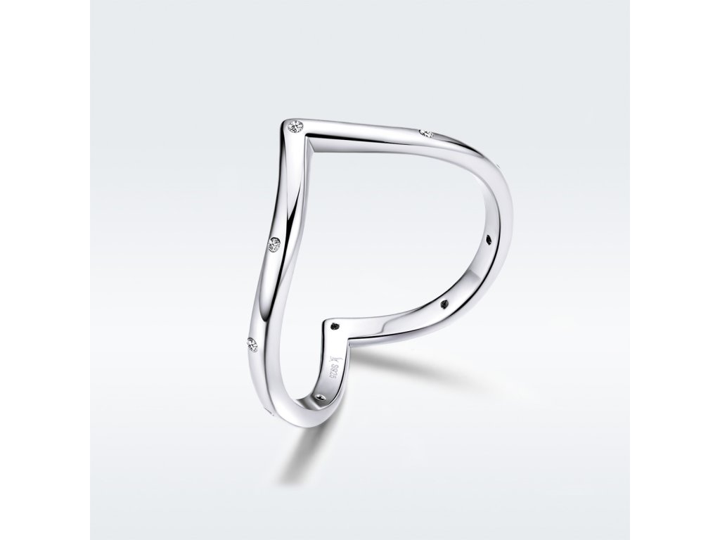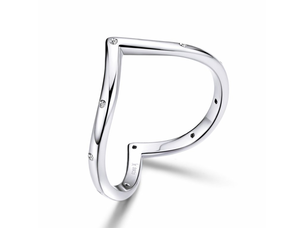 - Strieborný prsteň v dizajne Nadčasovej elegancie zdobený čírymi zirkónmi.