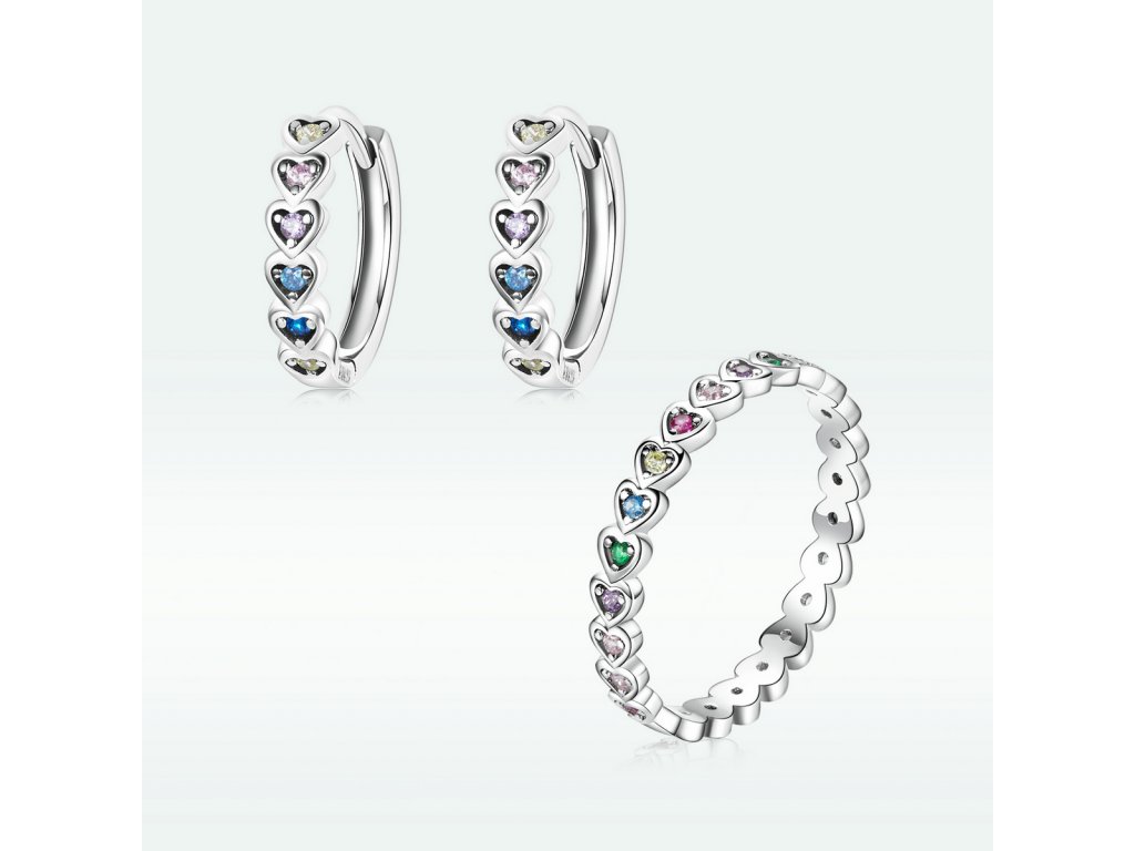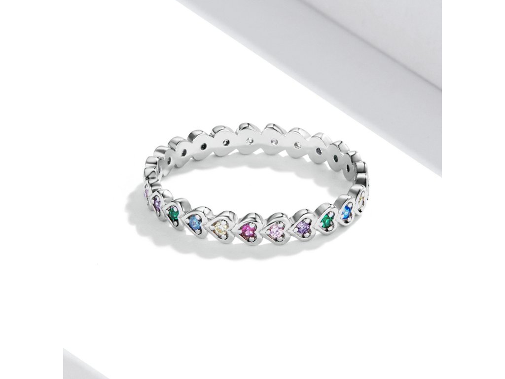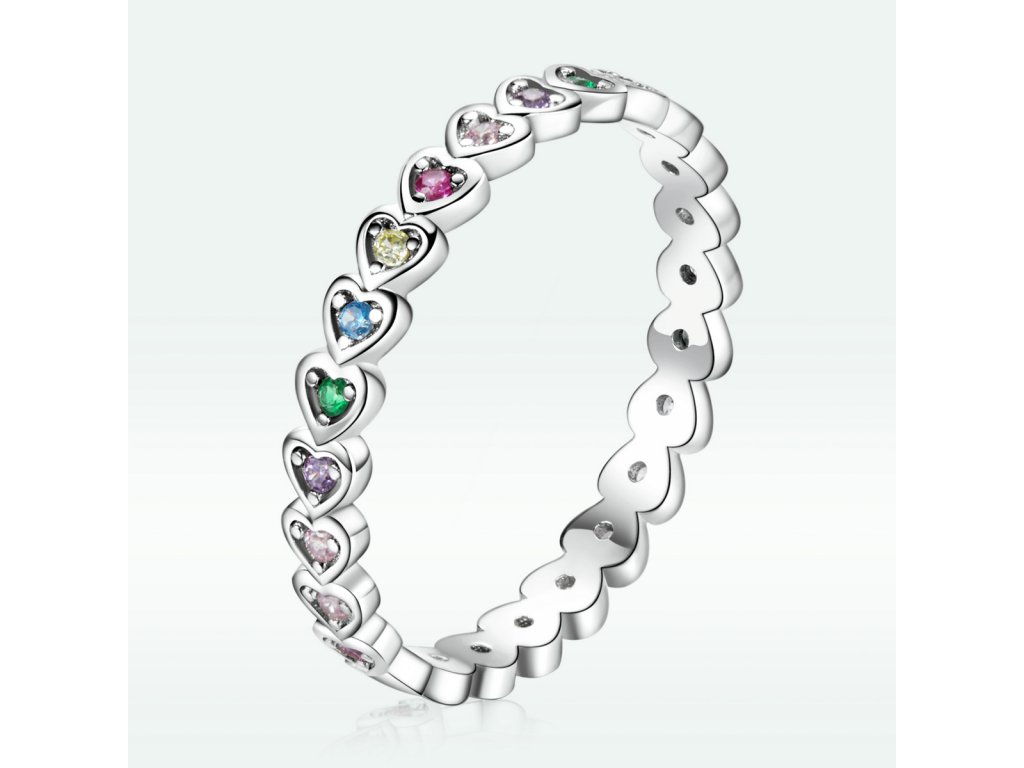 - Strieborný prsteň v dizajne Pole milovaných sŕdc zdobených farebnými srdiečkami v podobe trblietavých zirkónov. Originálny dizajn prsteňa, kvalitné spracovanie a materiál, ručne dohotovené.