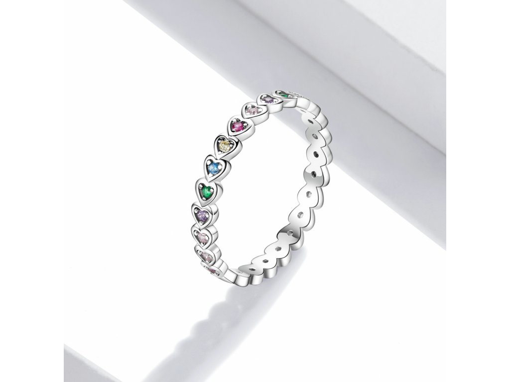 - Strieborný prsteň v dizajne Pole milovaných sŕdc zdobených farebnými srdiečkami v podobe trblietavých zirkónov. Originálny dizajn prsteňa, kvalitné spracovanie a materiál, ručne dohotovené.