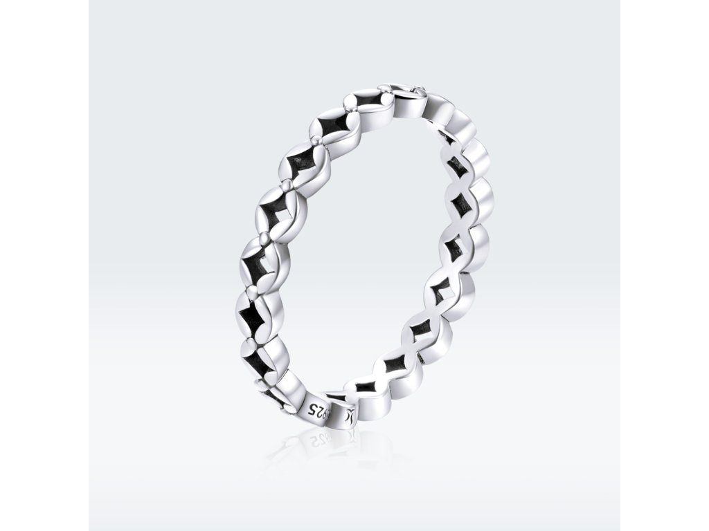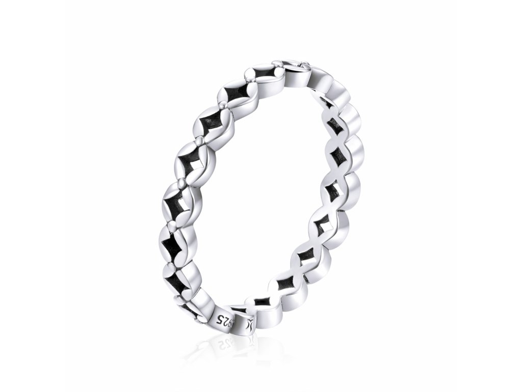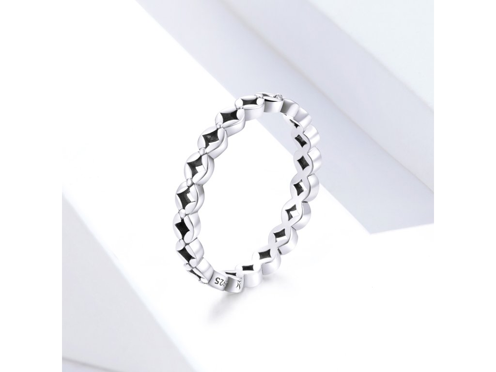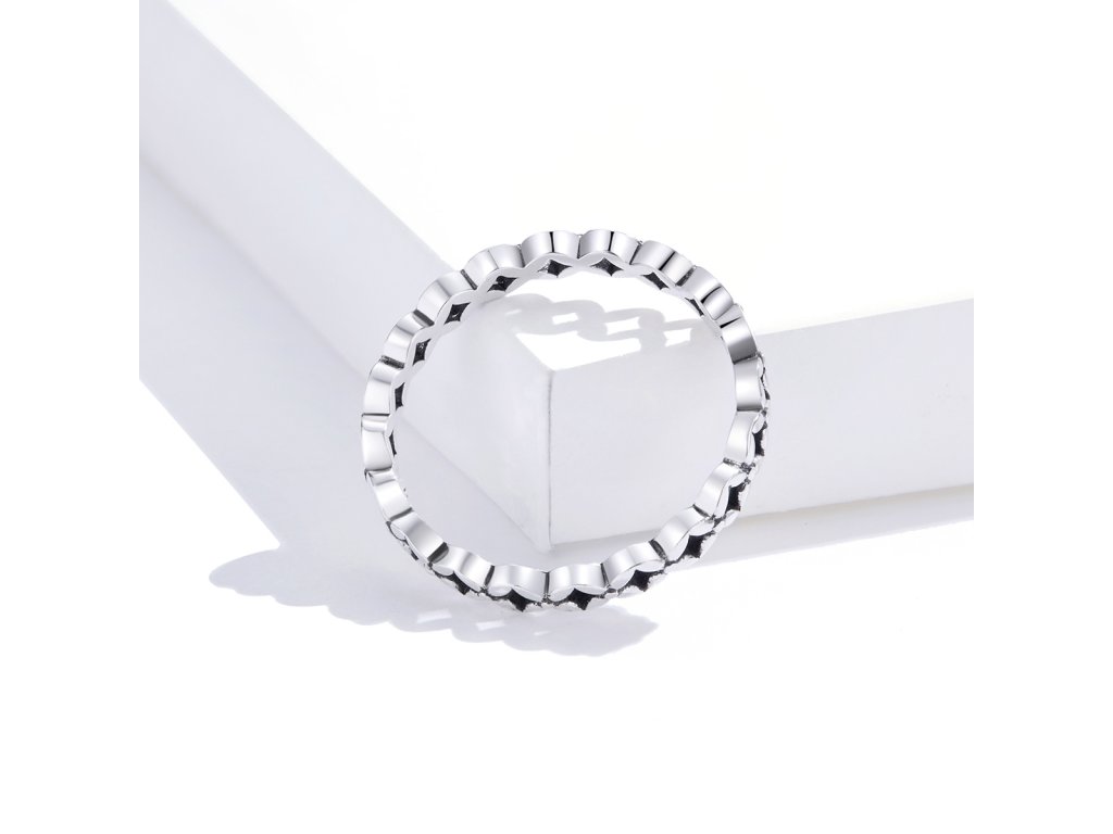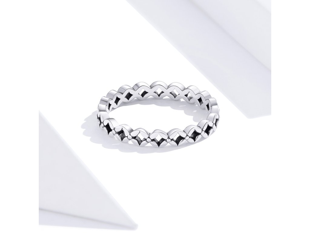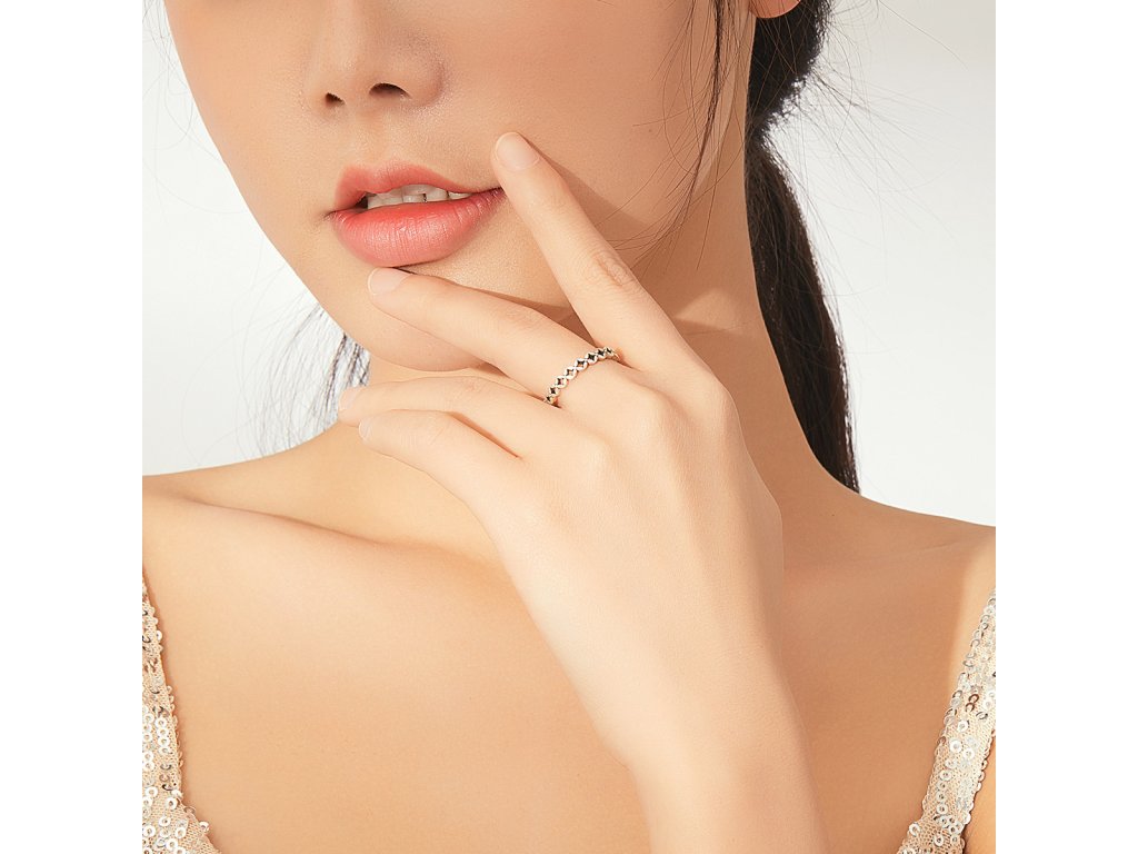 - Strieborný prsteň zdobený ručne vyrezávanými tvarmi pripomínajúcimi hviezdy. Výrezy sú zdobené technikou oxidácie, aby design viac vynikol.