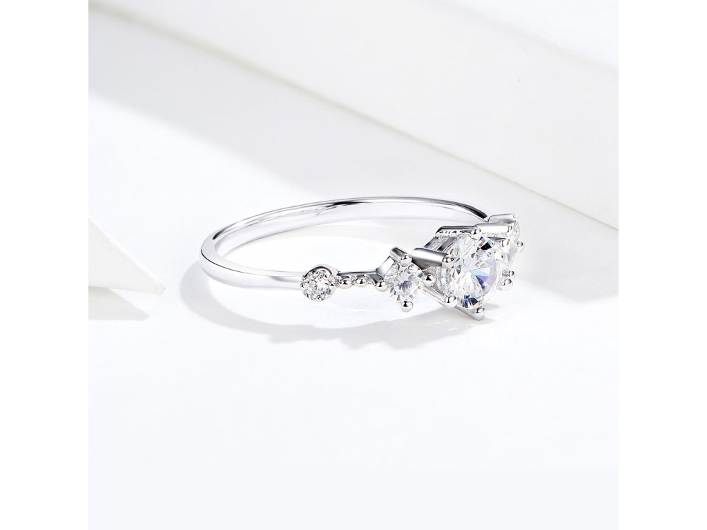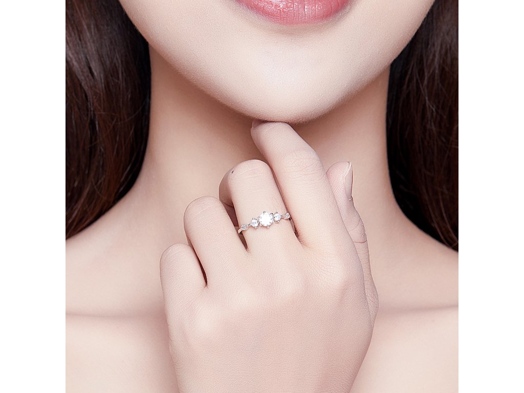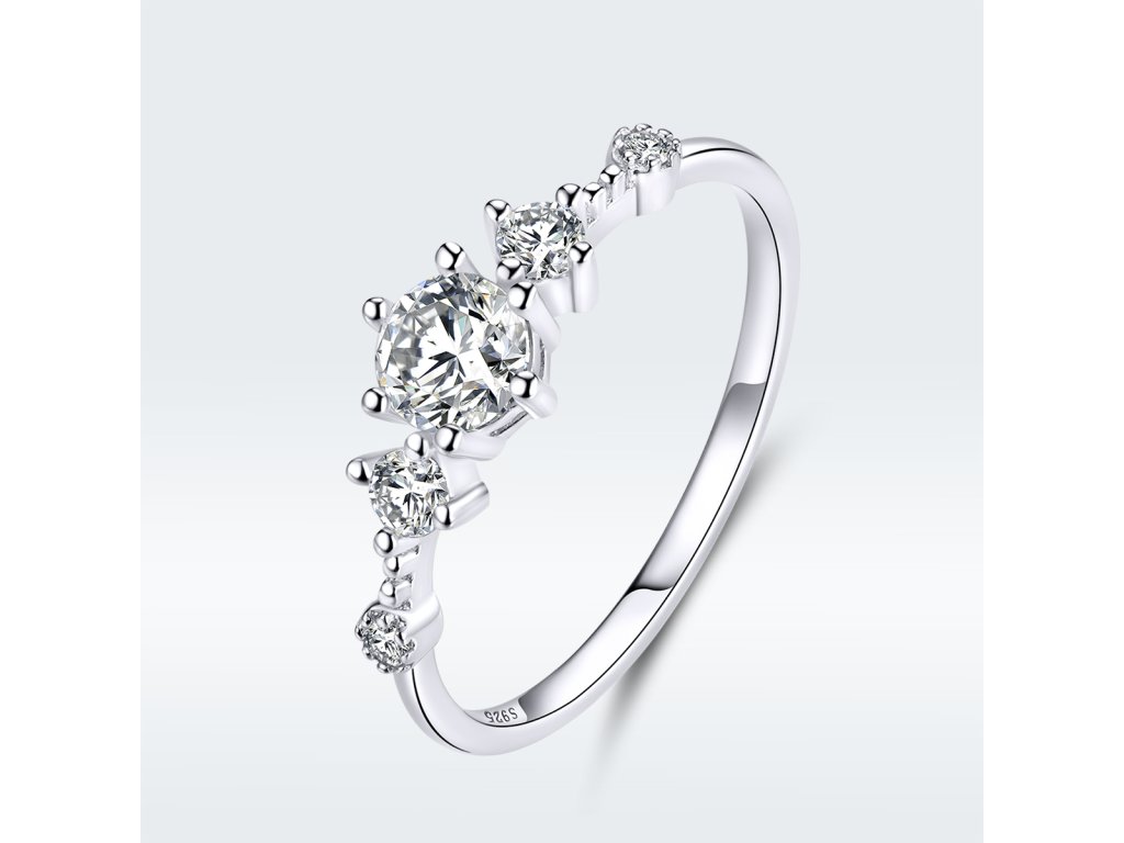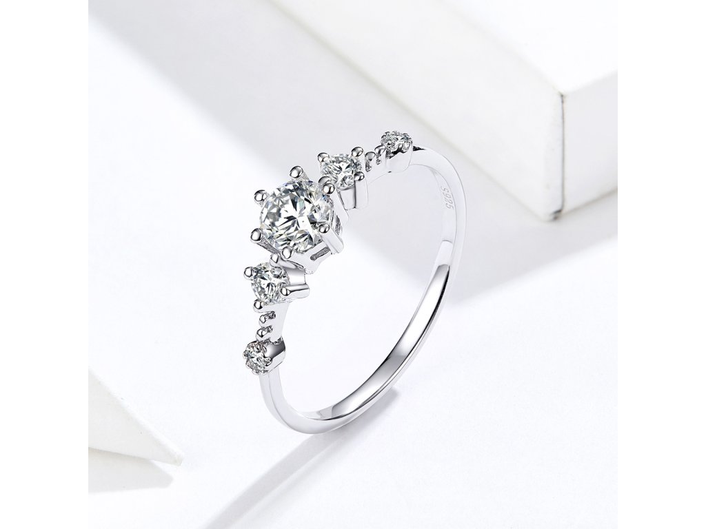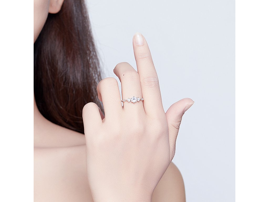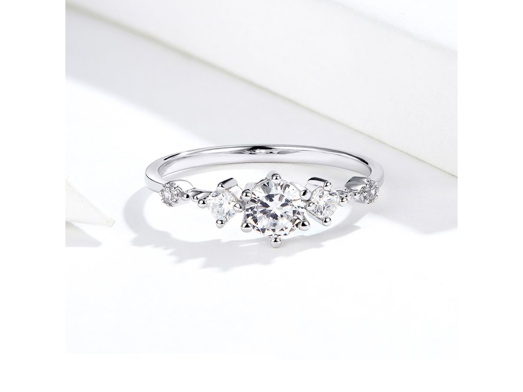 - Strieborný prsteň v dizajne Priania princeznej zdobený čírymi trblietavými zirkónmi.