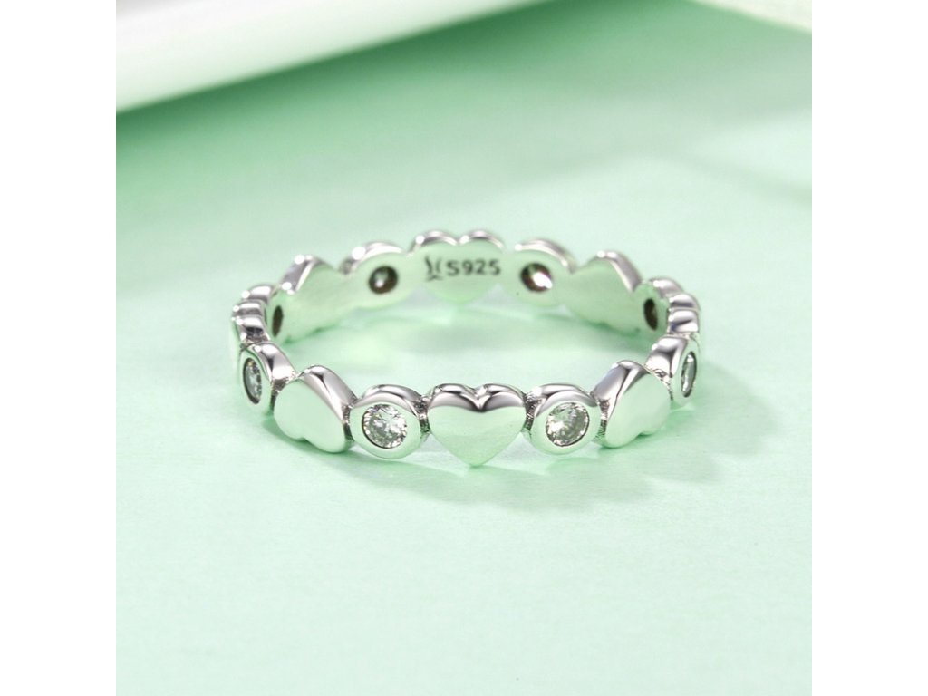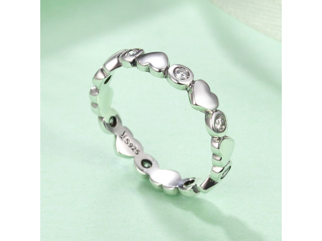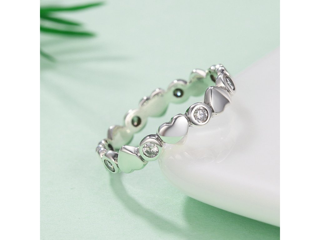 - Luxusný a prepracovaný prsteň v dizajne milovaných sŕdc zdobený čírymi zirkónmi.