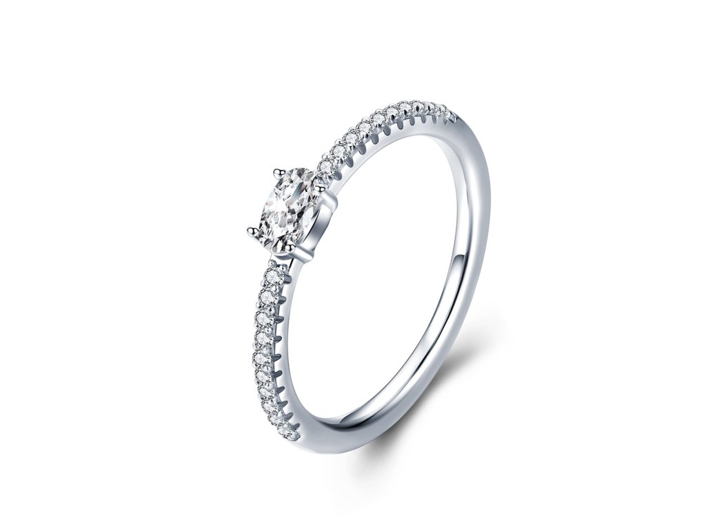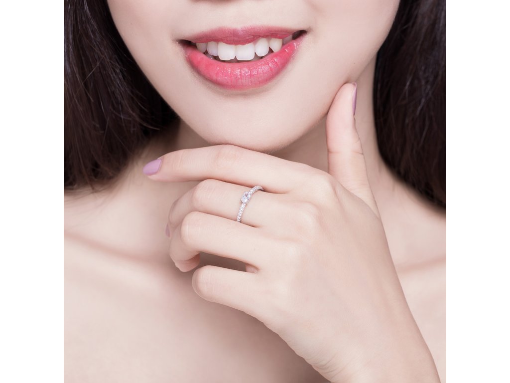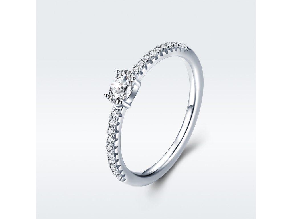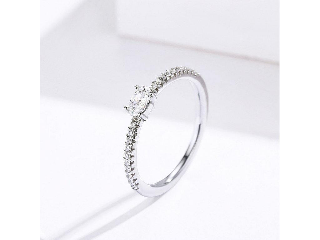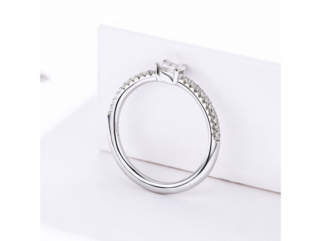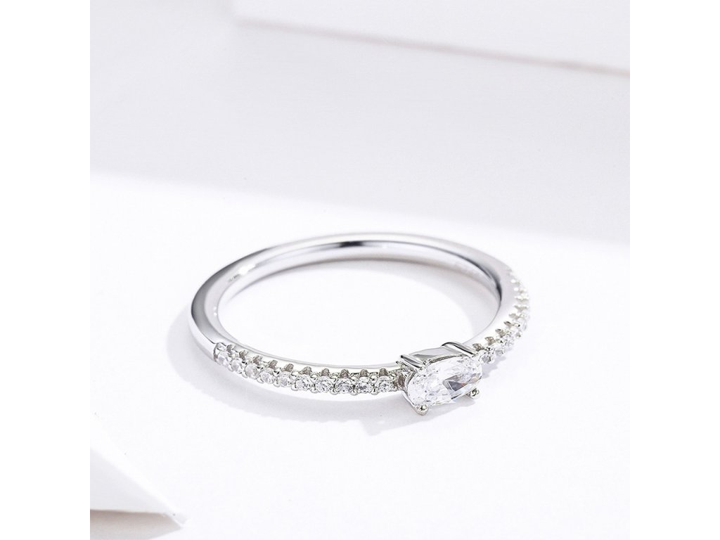 - Strieborný prsteň v dizajne Trblietavej elegancie zdobený čírymi zirkónmi.