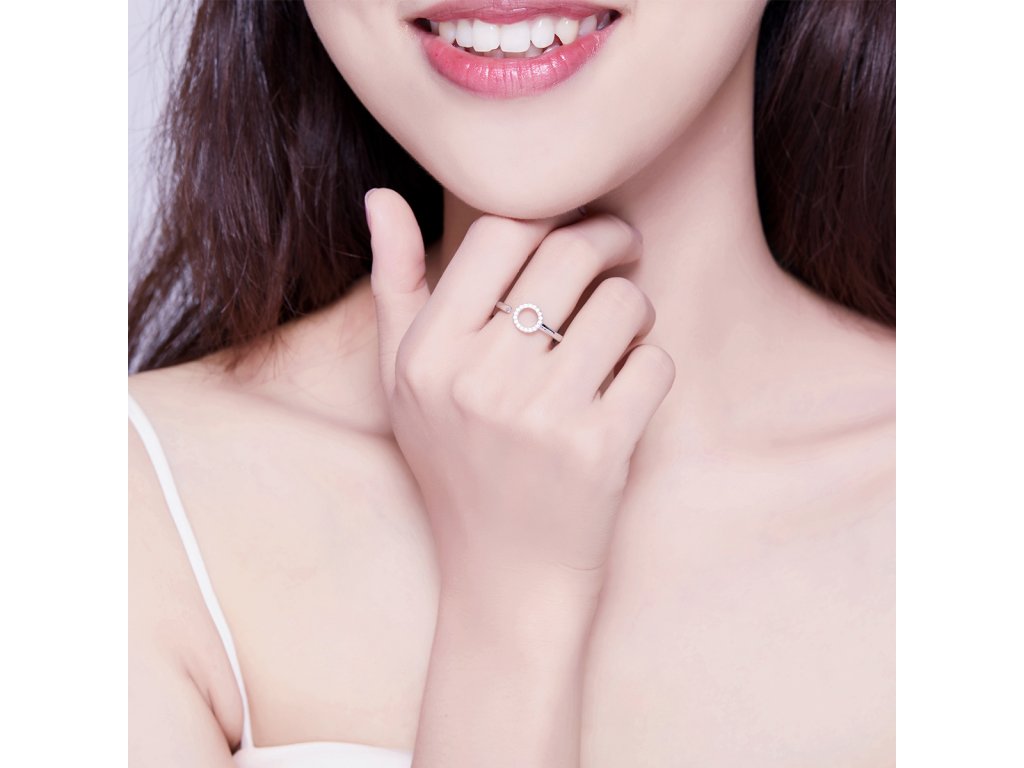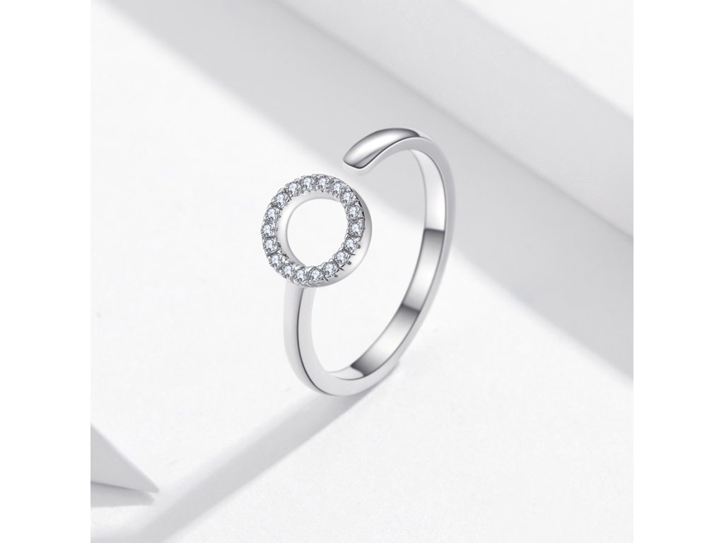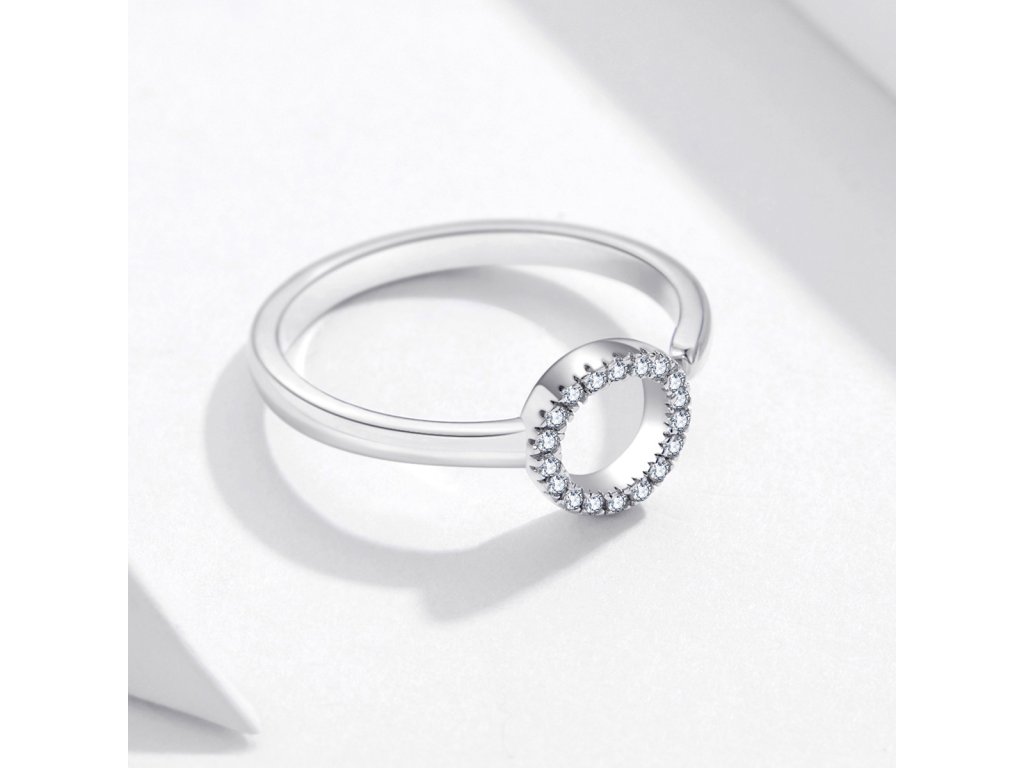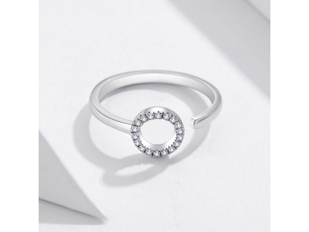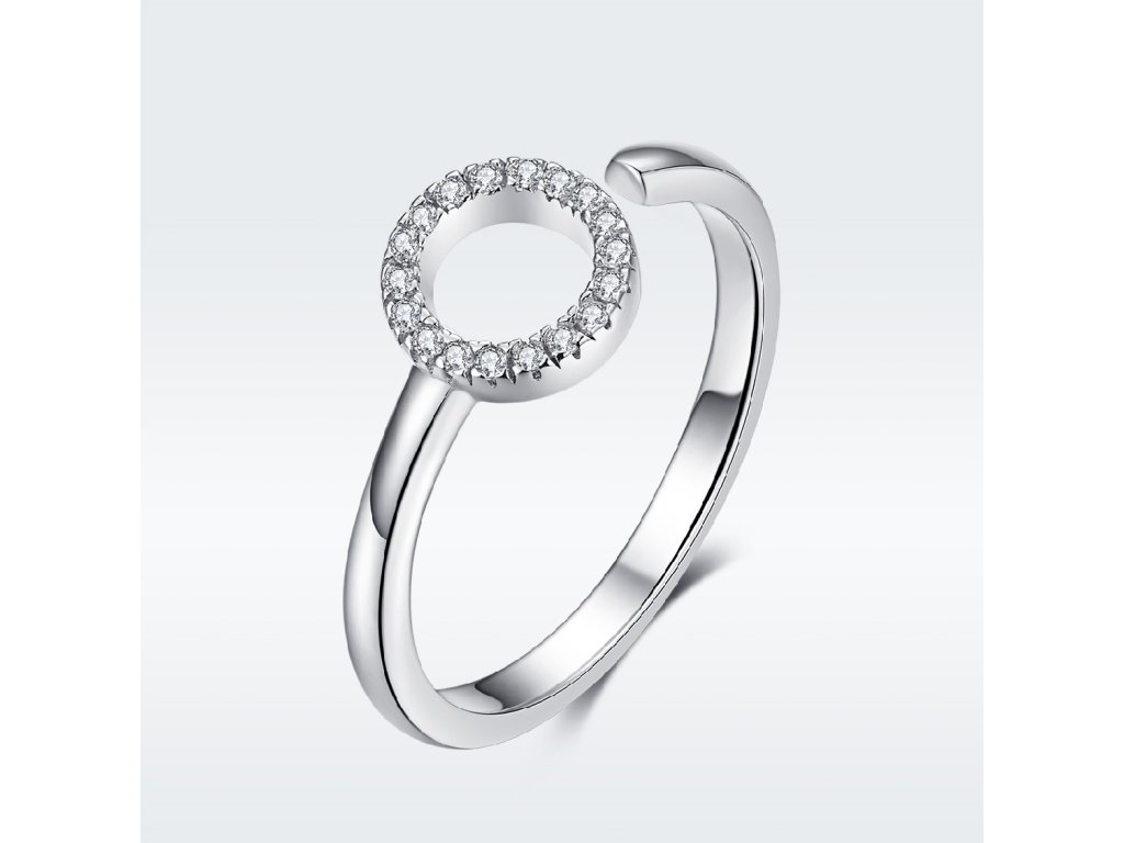 - Strieborný prsteň v dizajne Trblietavá elegancia zdobený čírymi zirkónmi.