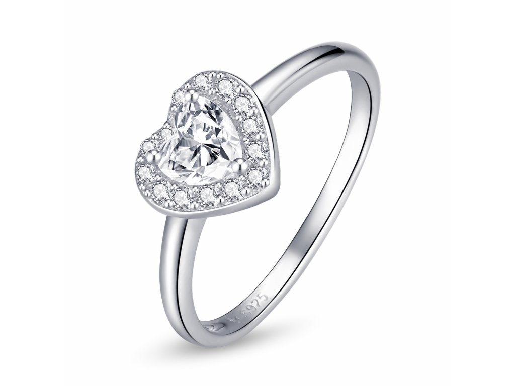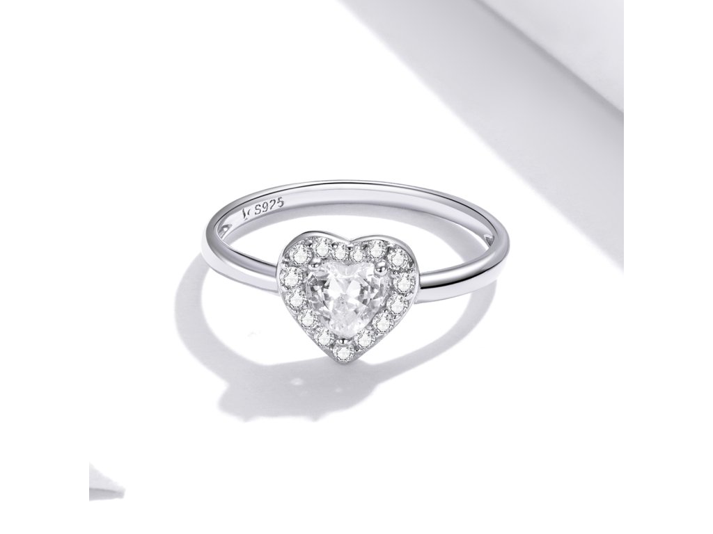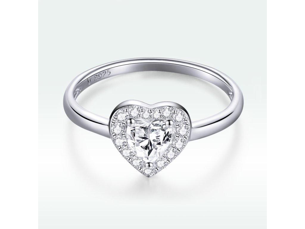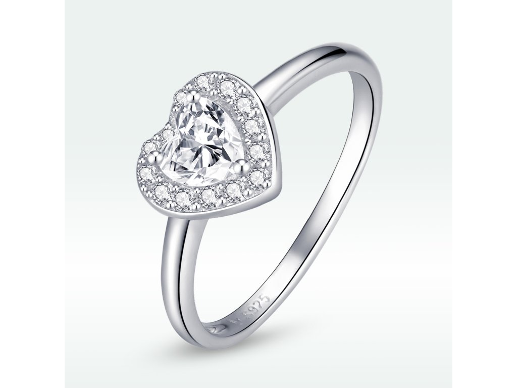 - Strieborný prsteň v dizajne Trblietavého srdca posádzaného čírymi zirkónmi. Originálny dizajn prsteňa, kvalitné spracovanie a materiál, ručne dohotovené.
