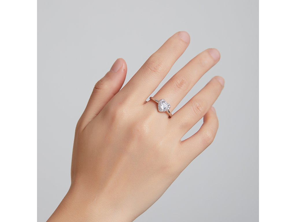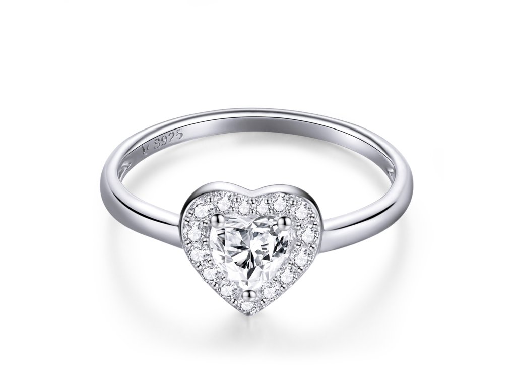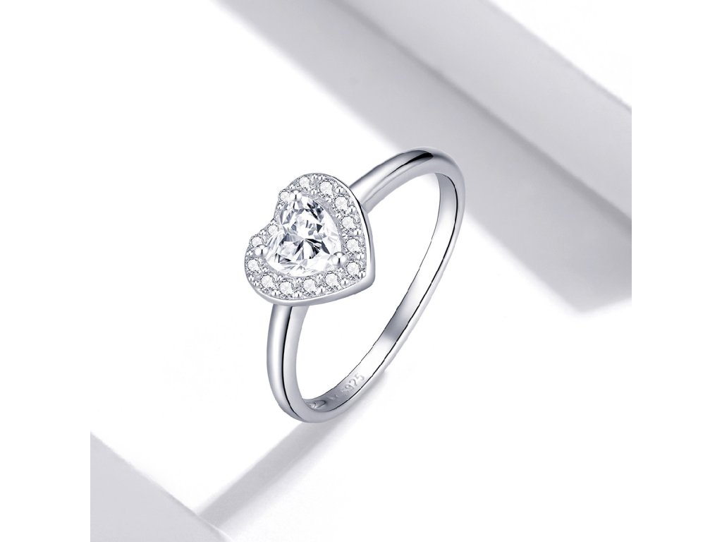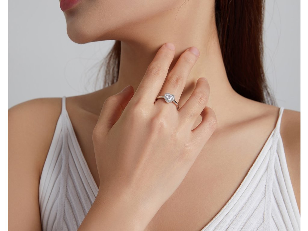 - Strieborný prsteň v dizajne Trblietavého srdca posádzaného čírymi zirkónmi. Originálny dizajn prsteňa, kvalitné spracovanie a materiál, ručne dohotovené.