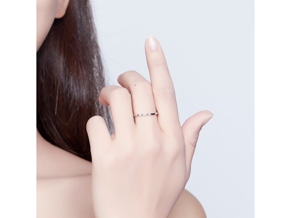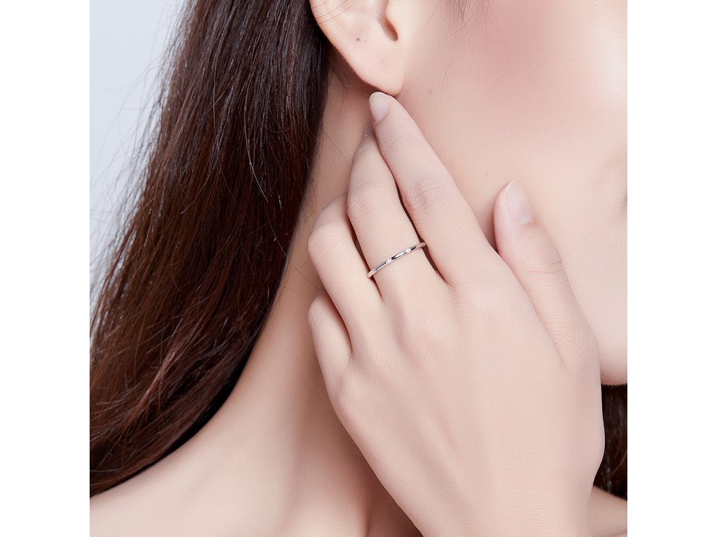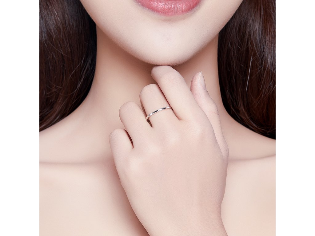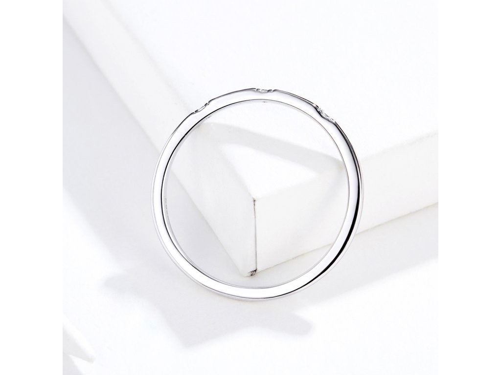 - Strieborný prsteň v dizajne Tri trblietavých kameňov v podobe čírych zirkónov.