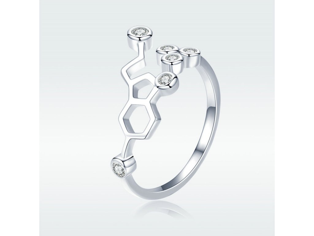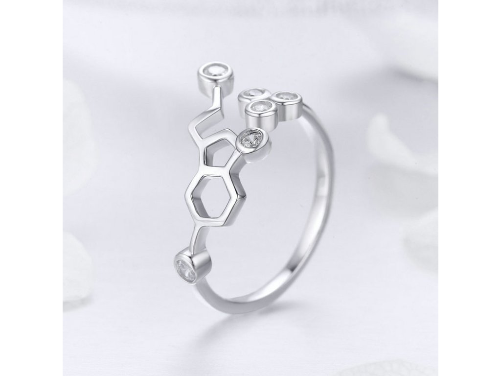 - Luxusný a prepracovaný strieborný prsteň v dizajne včelieho plástu zdobený zirkónmi.