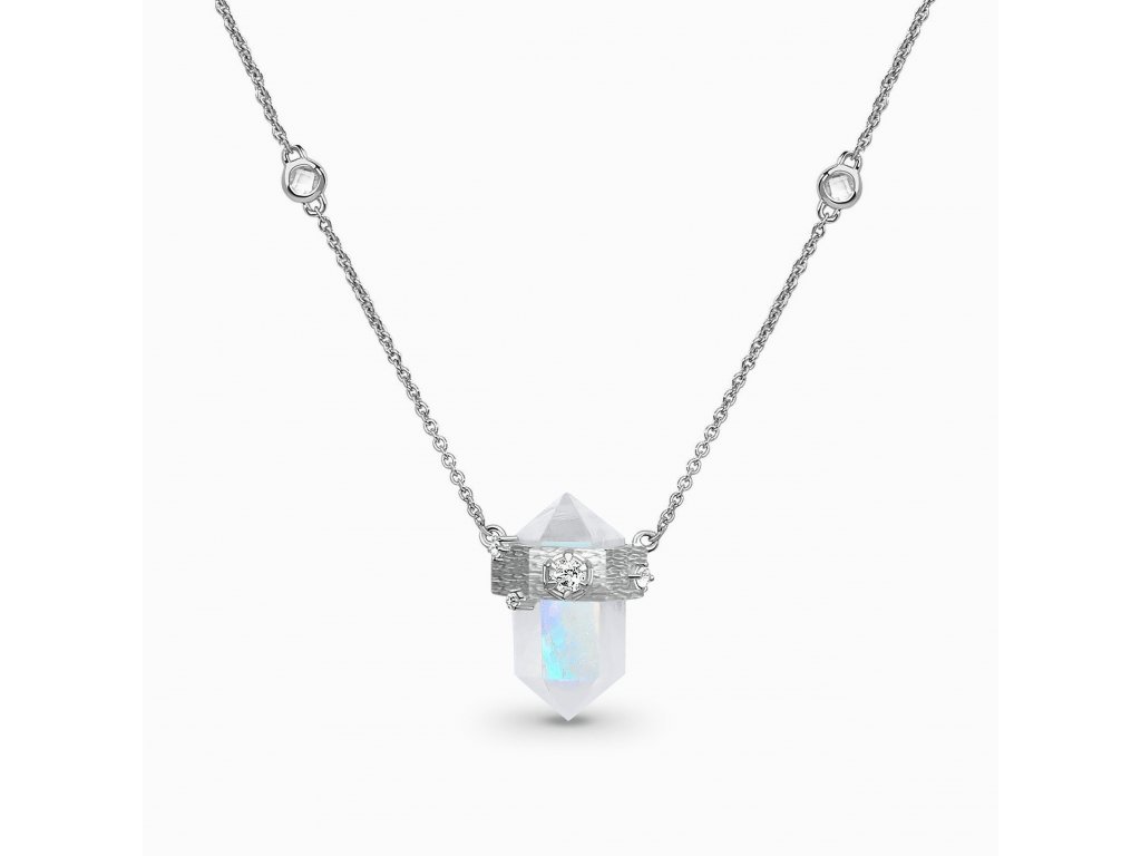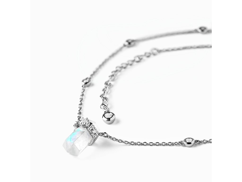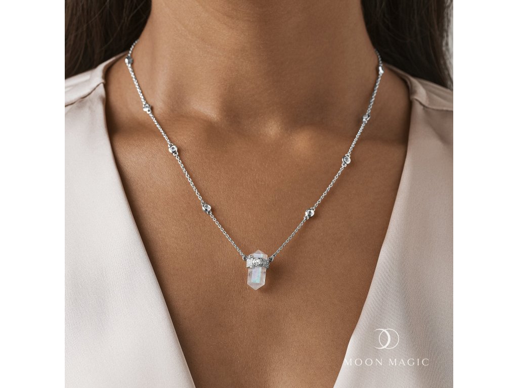 Emporial strieborný rhodiovaný náhrdelník Dúhový mesačný kameň