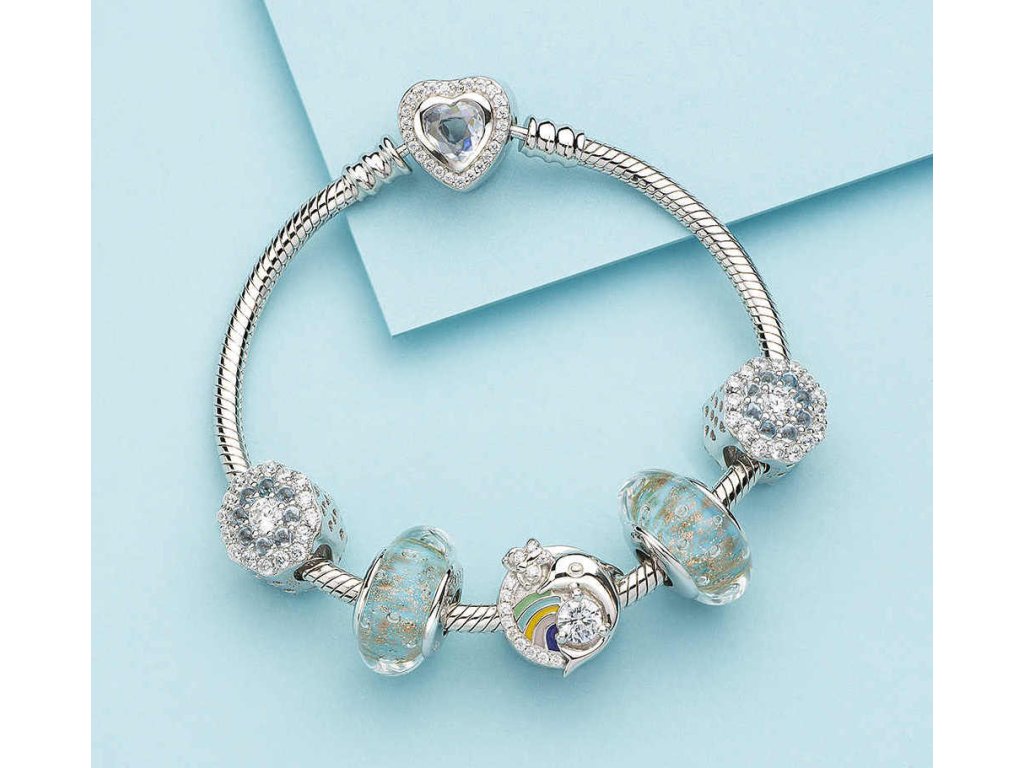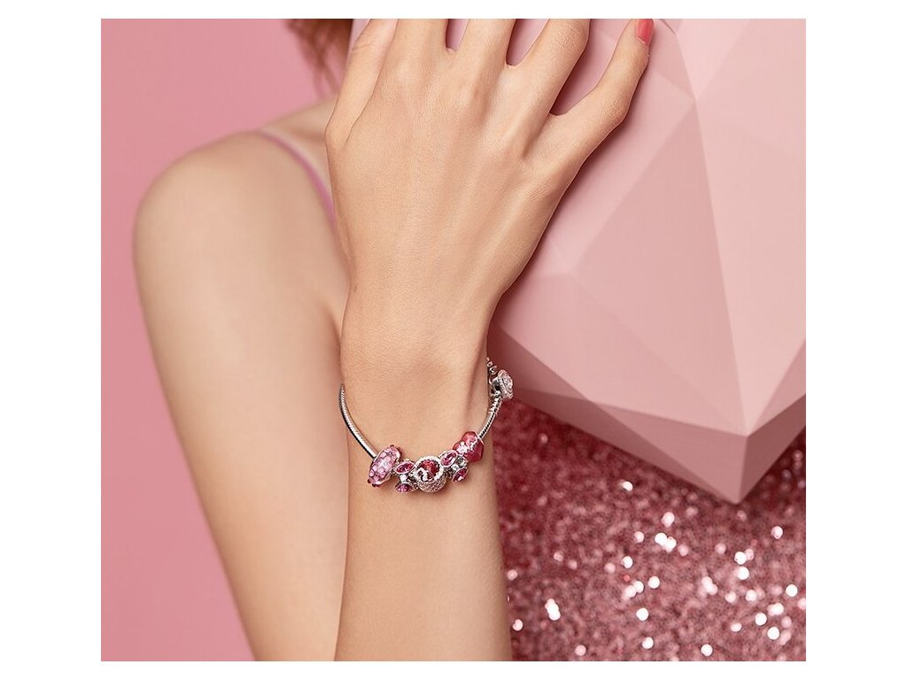 Emporial strieborný rhodiovaný náramok na prívesky Luxusné krištáľové srdce DR22123B-SILVER-RHODIUM