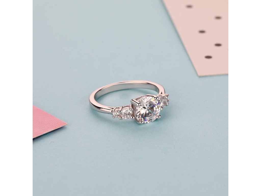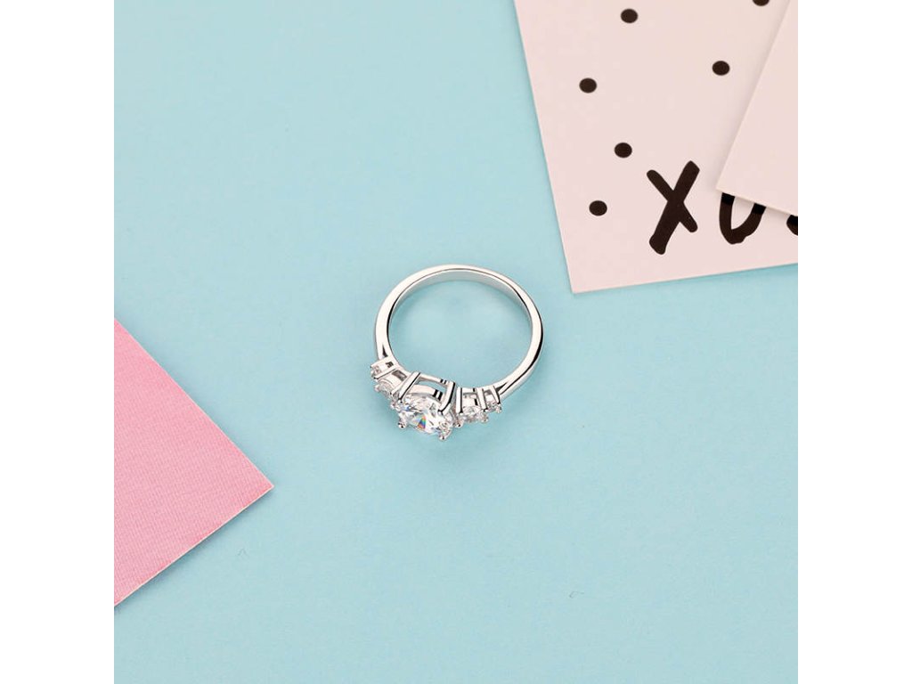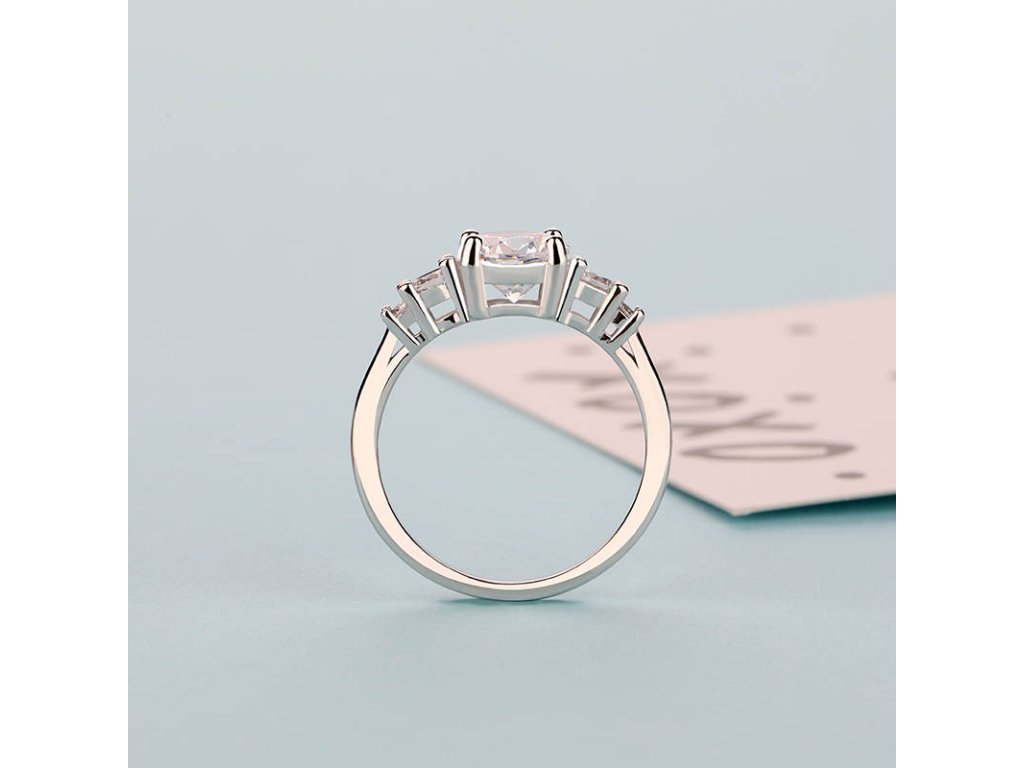 - Strieborný rhodiovaný prsteň Princeznin klenot zdobený piatimi čírymi brúsenými zirkónmi. Originálny dizajn prsteňa, kvalitné spracovanie a materiál, ručne dohotovené.