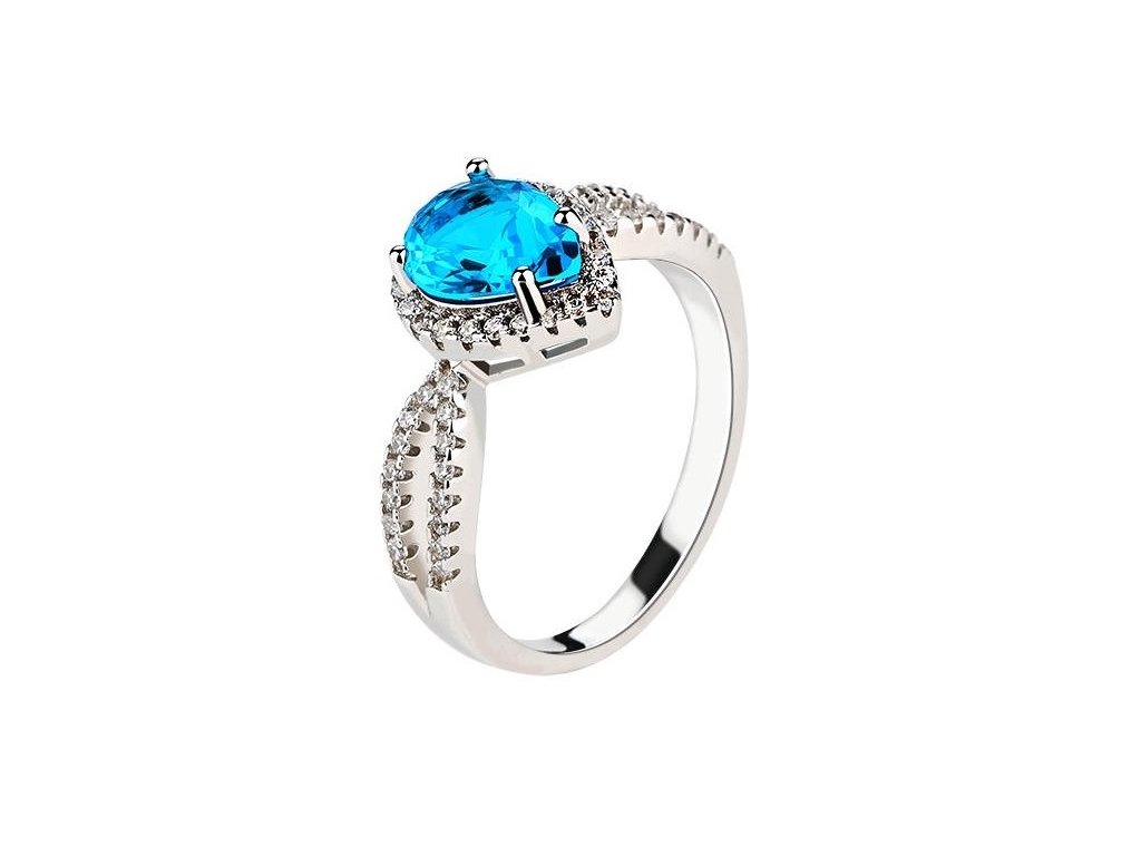 Emporial strieborný rhodiovaný prsteň Zafírová modrá kvapka