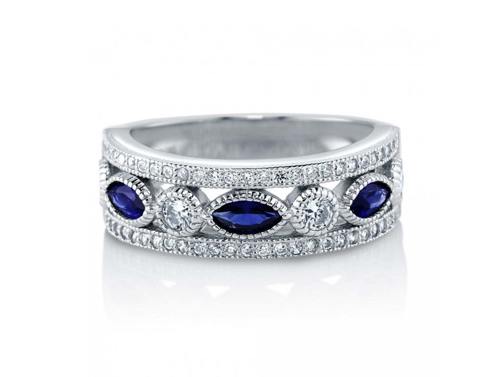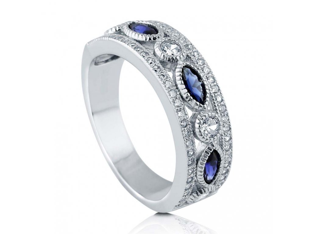 Emporial strieborný rhodiovaný prsteň Zafírový kameň