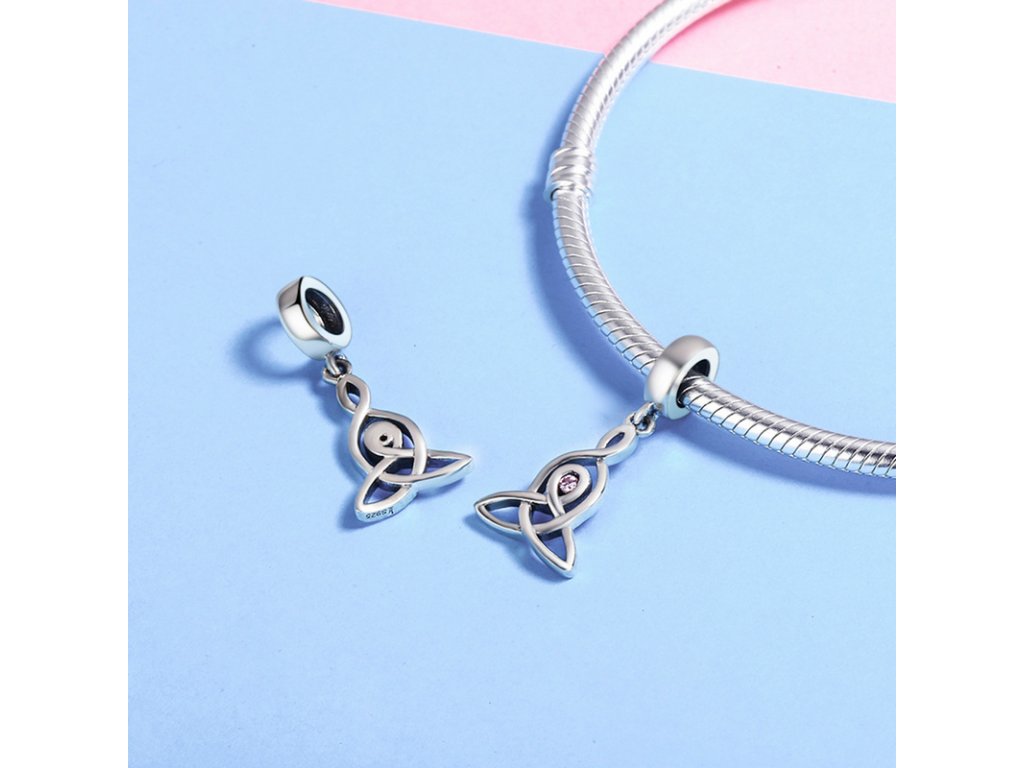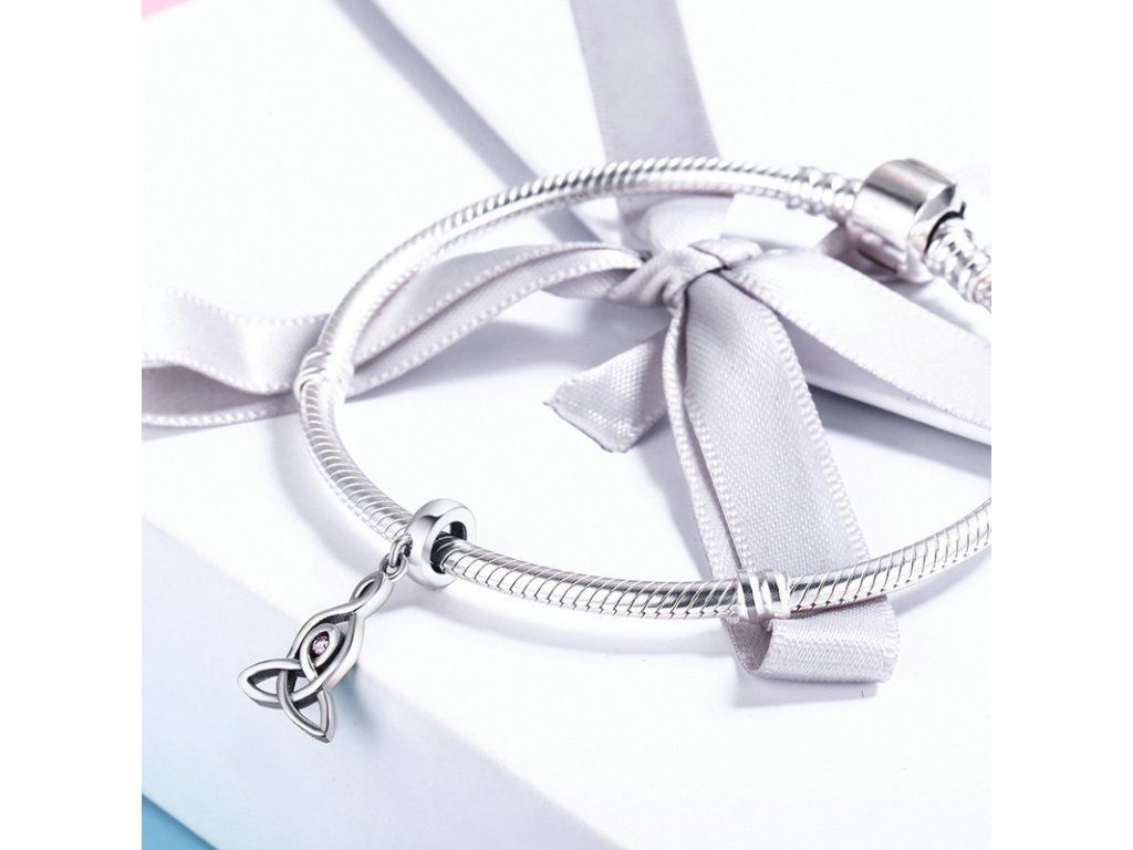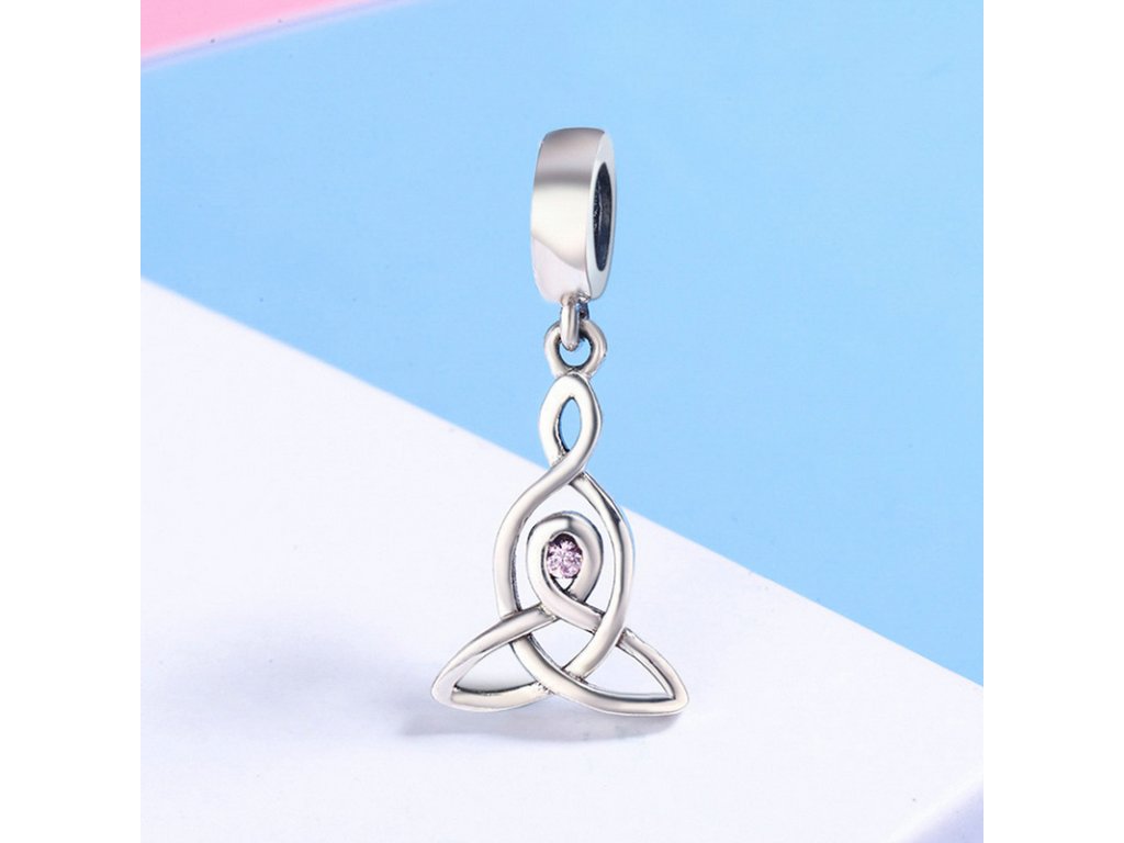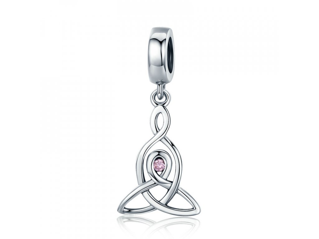 - Luxusný a prepracovaný visací prívesok symbol ochrany obohatený trblietavým kameňom v podobe ružového zirkónu.