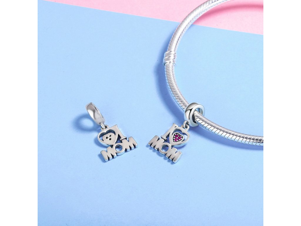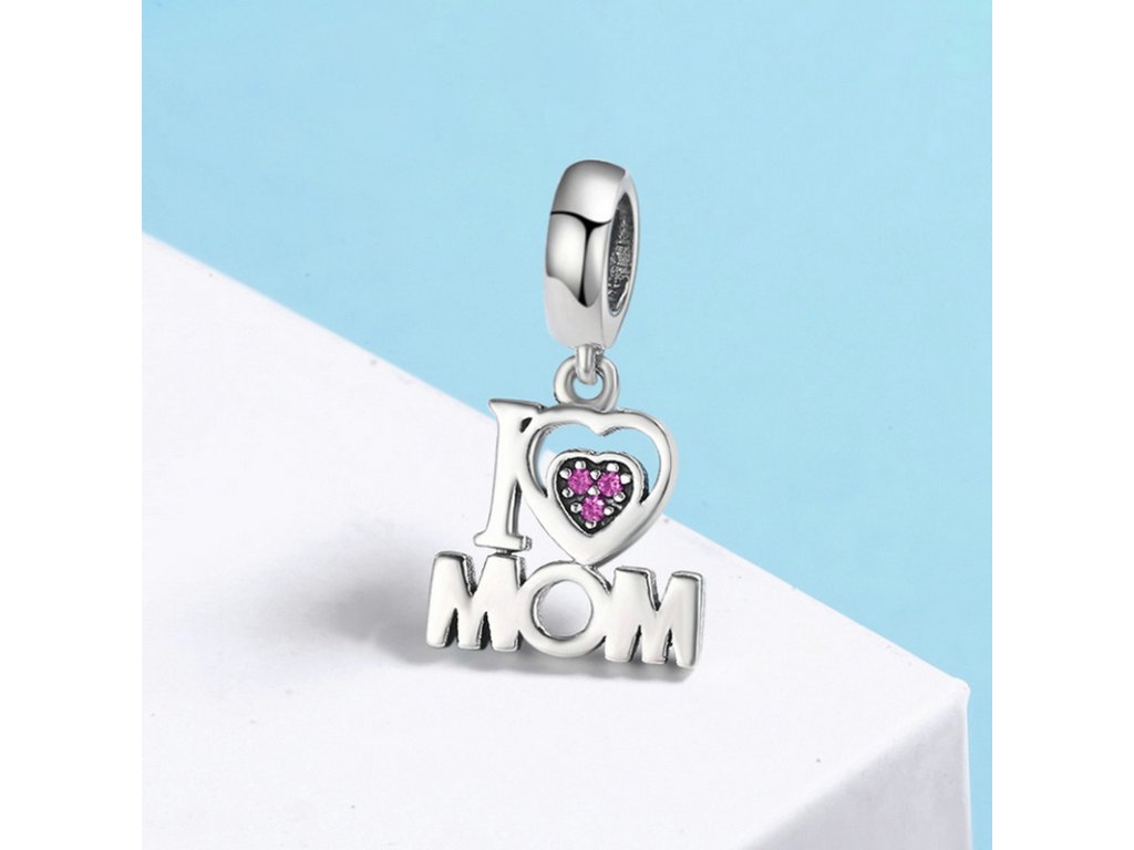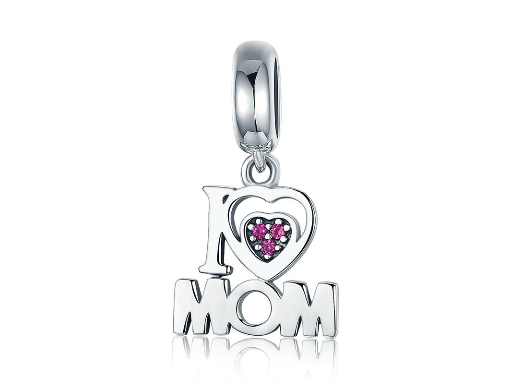 Luxusný a prepracovaný visiaci prívesok v dizajne anglického nápisu "I love mom" V preklade "Milujem mamičku".