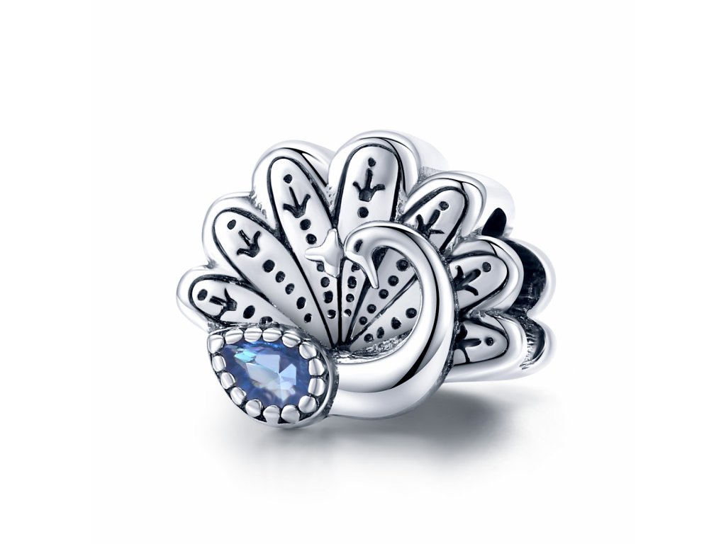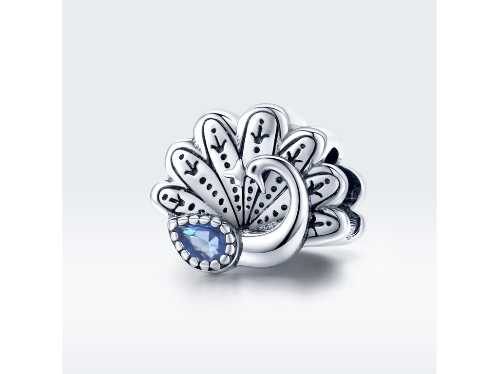 - Strieborný prívesok v dizajne Krásneho páva zdobeného smaltom a modrým zirkónom. Originálny design prívesku, kvalitné spracovanie a materiál, ručne dohotovené.