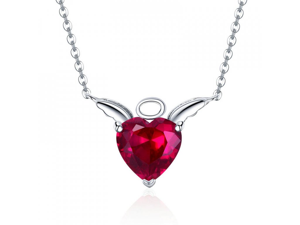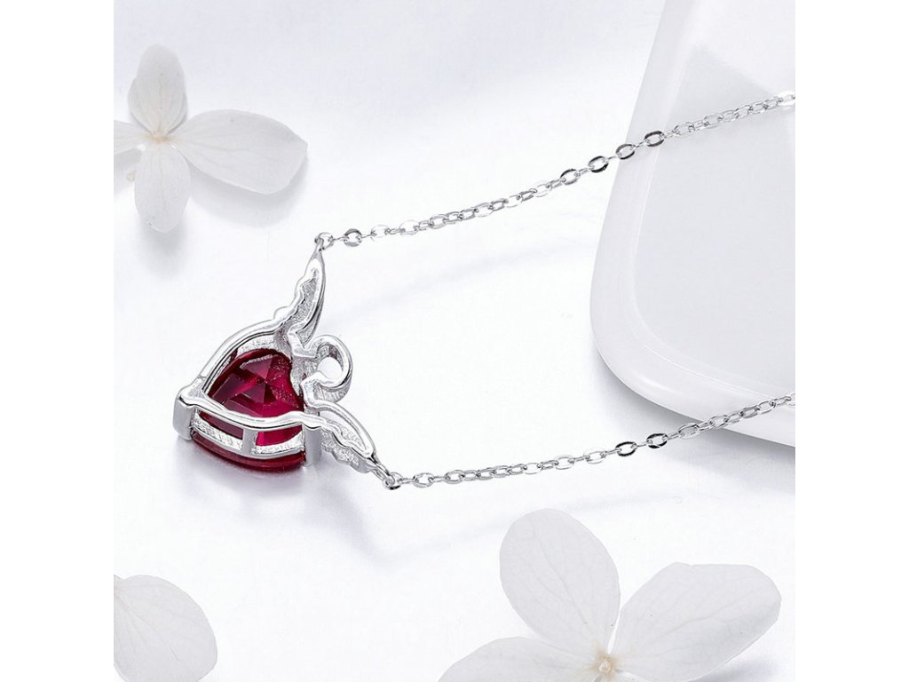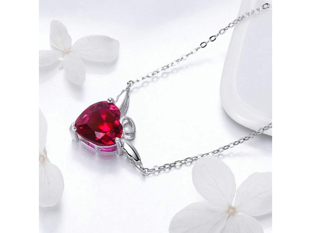 Luxusný strieborný náhrdelník s príveskom anjelika, ktorému dominuje ružovočervené srdce v podobe zirkónu. Originálny dizajn náhrdelníka, kvalitné spracovanie a materiál, ručne dohotovené.