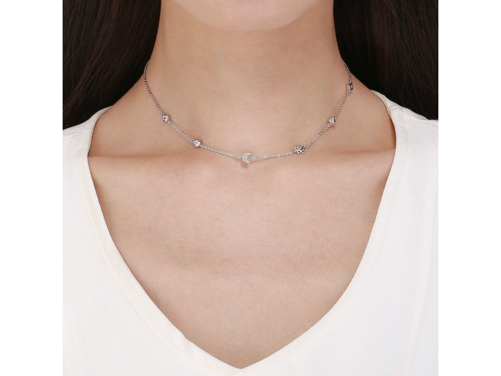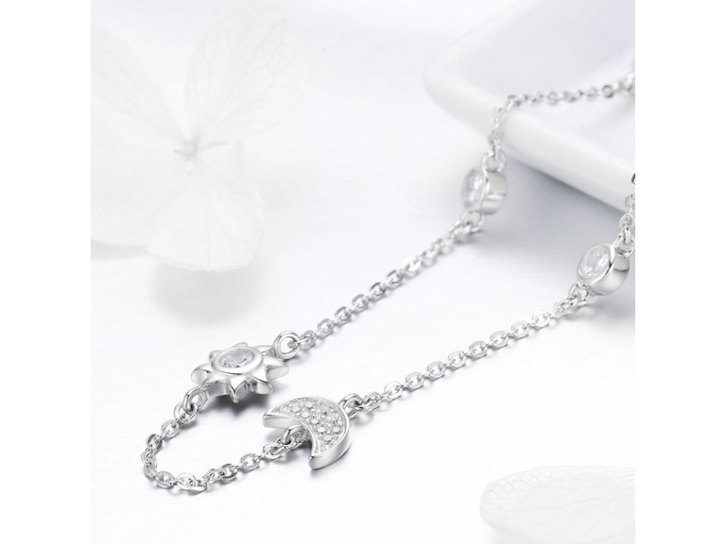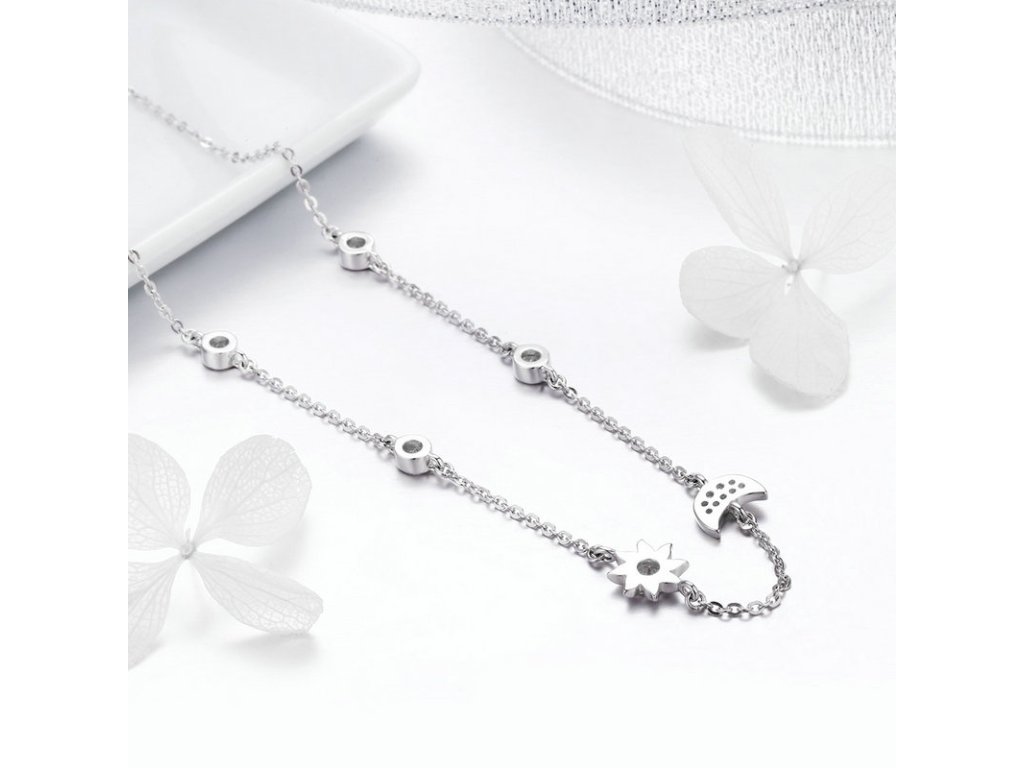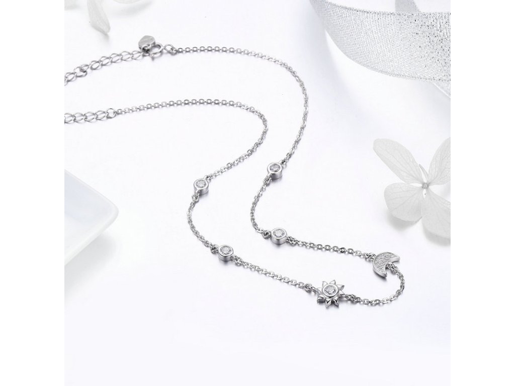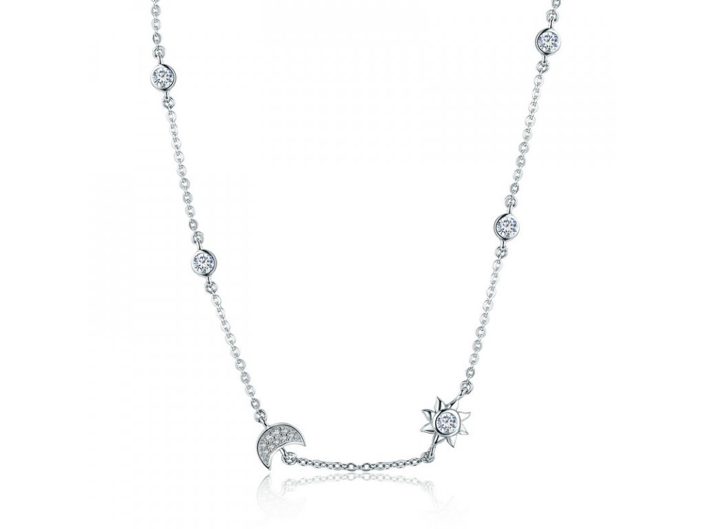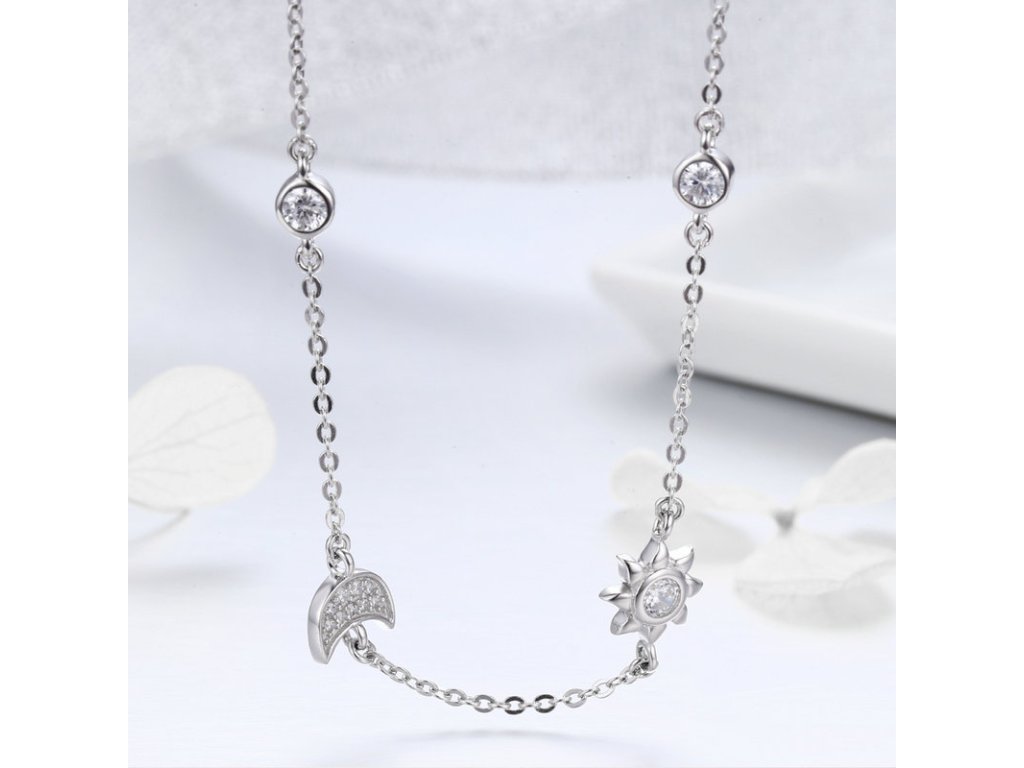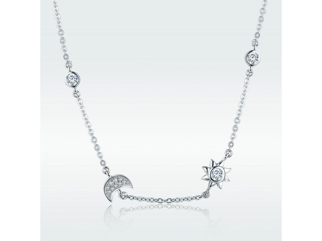 Krásny strieborný náhrdelník v dizajne deň a noc s príveskami mesiaca a slnka zdobené čírymi zirkónmi. Originálny dizajn náhrdelníka, kvalitné spracovanie a materiál, ručne dohotovené.