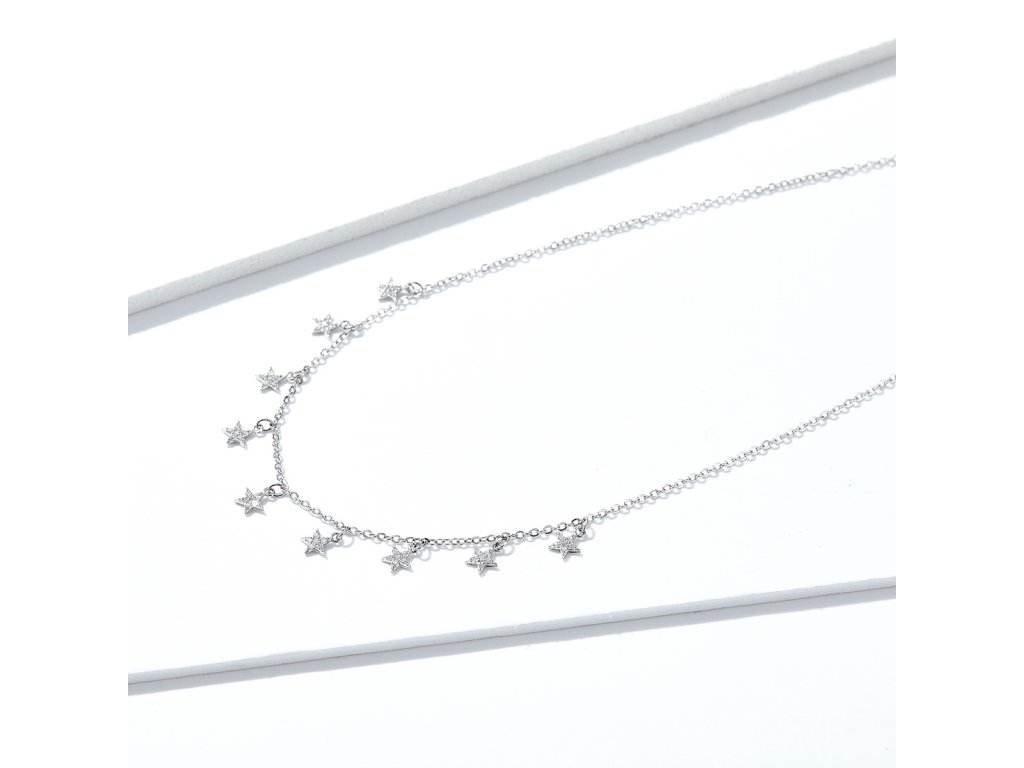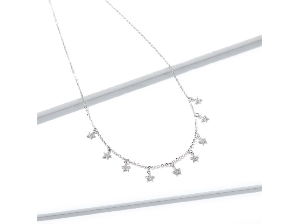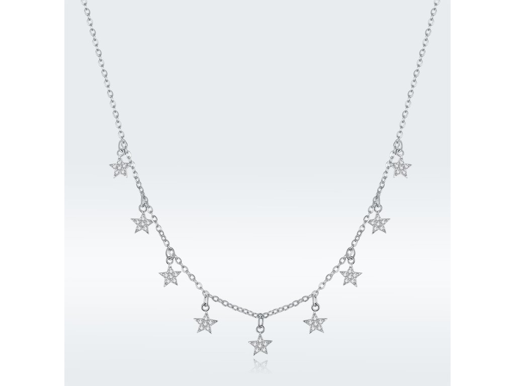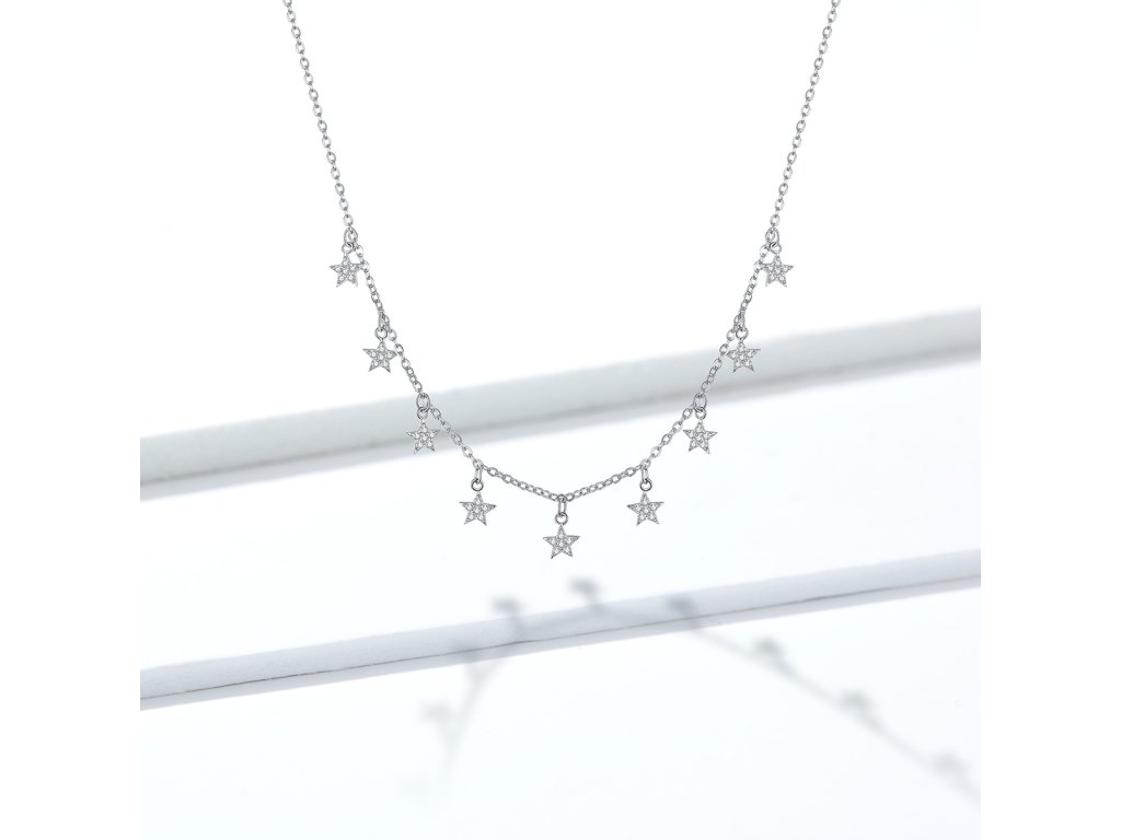 - Strieborný náhrdelník v dizajne Pole trblietavých hviezd zdobených čírymi zirkónmi. Originálny dizajn náhrdelníka, kvalitné spracovanie a materiál, ručne dohotovené.