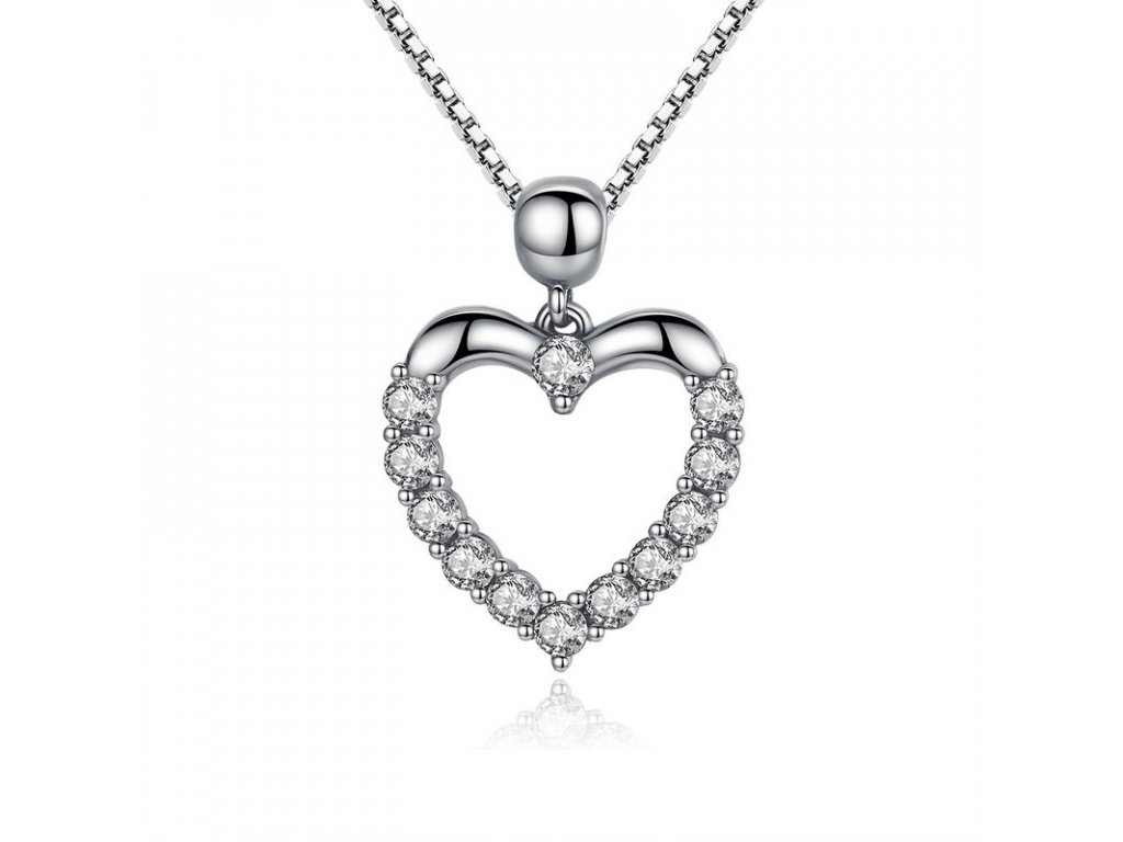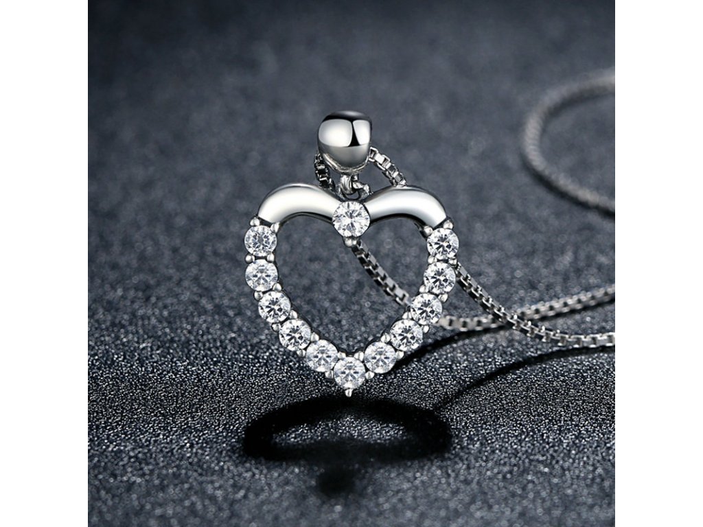 Luxusný a prepracovaný elegantný náhrdelník z kvalitného striebra v dizajne srdca zdobeného čírymi trblietavými zirkónmi.