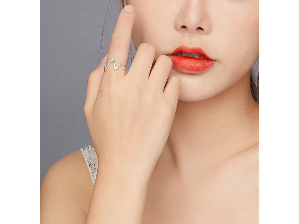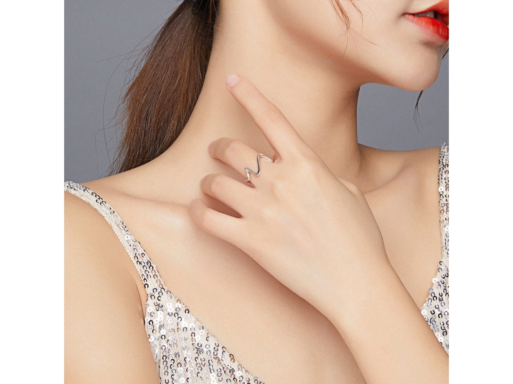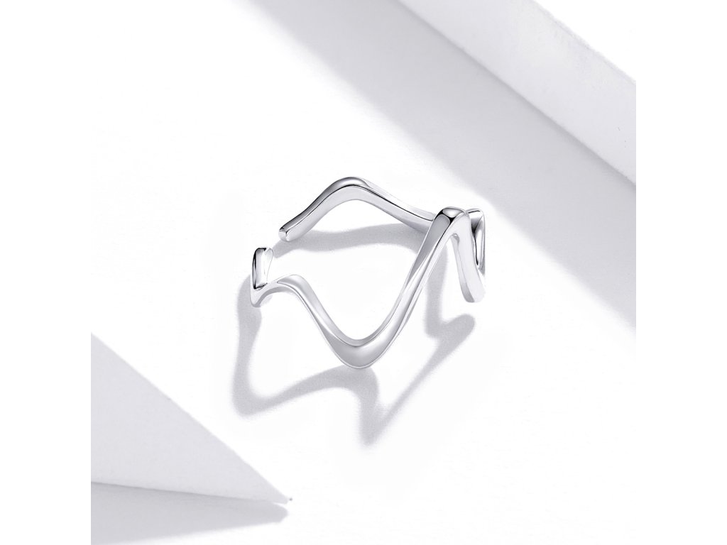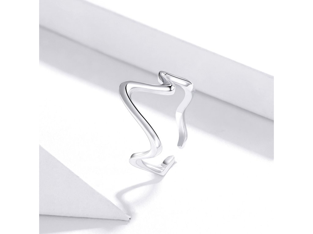 - Strieborný nastaviteľný prsteň v dizajne jednoduchých elegantných vlniek.