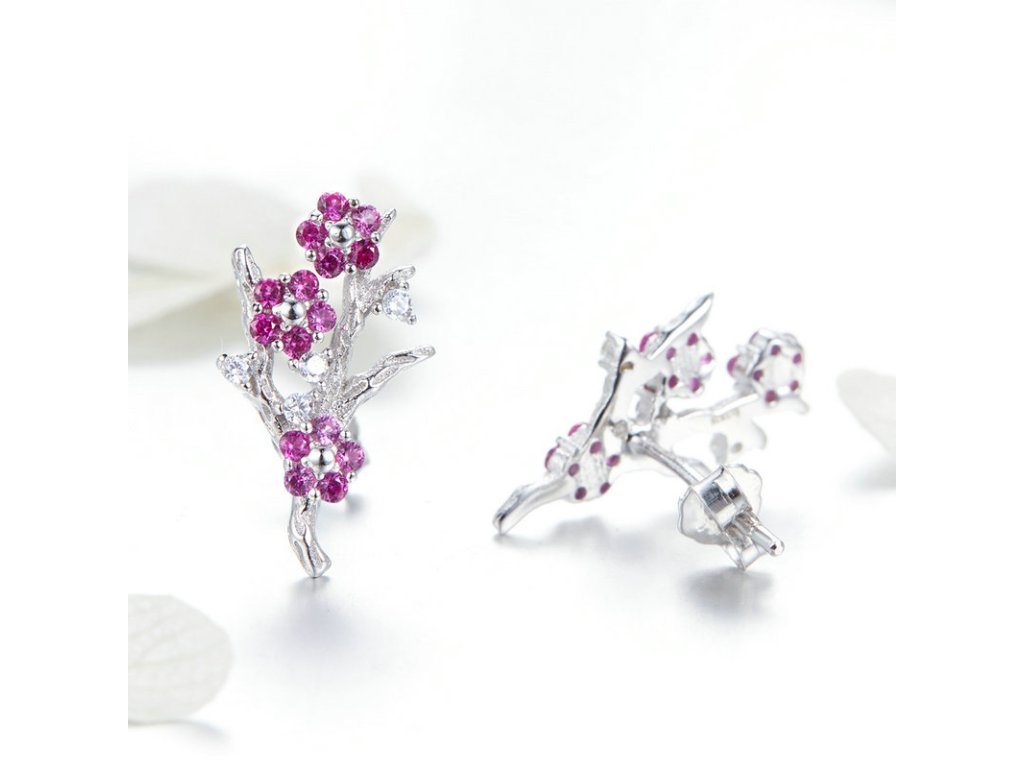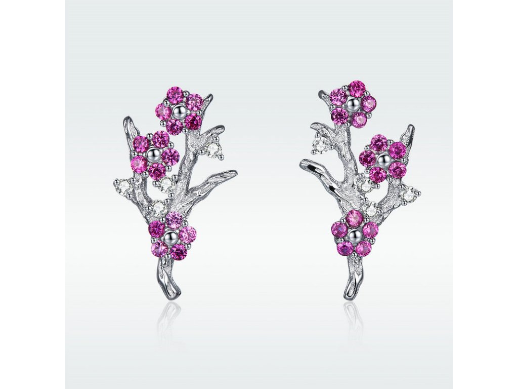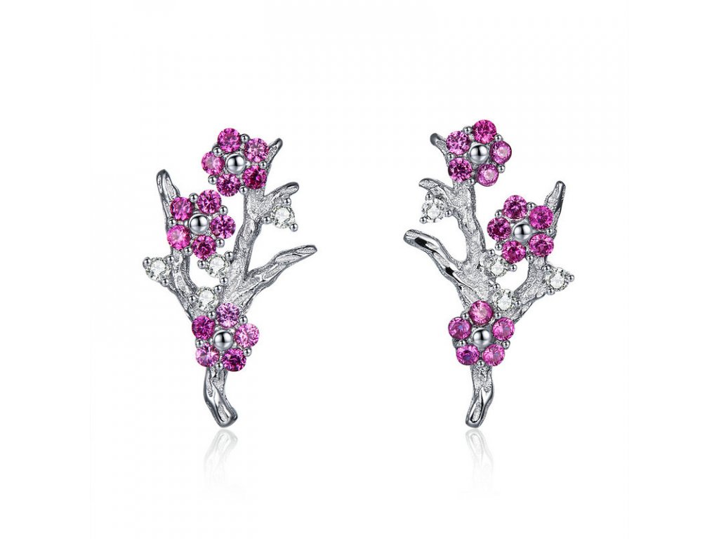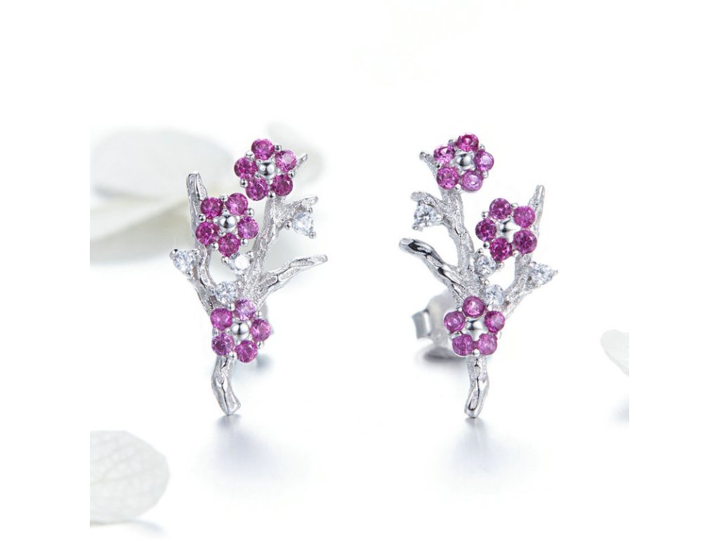 - Luxusné strieborné náušnice v dizajne zimnej kvetiny zdobené fialovými zirkónmi.