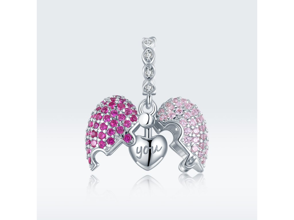 - Strieborný visiaci otvárací prívesok zdobený čírymi a ružovými kameňmi v podobe trblietavých zirkónov. Hlavný atribút tohto prívesku je skryté srdiečko popísané anglickými nápismi z oboch strán "Only" a "You" v preklade "Jedine Ty". Originálny design prívesku, kvalitné spracovanie a materiál, ručne dohotovené.