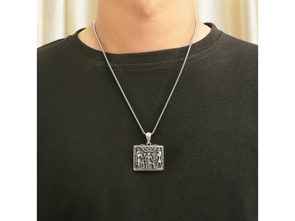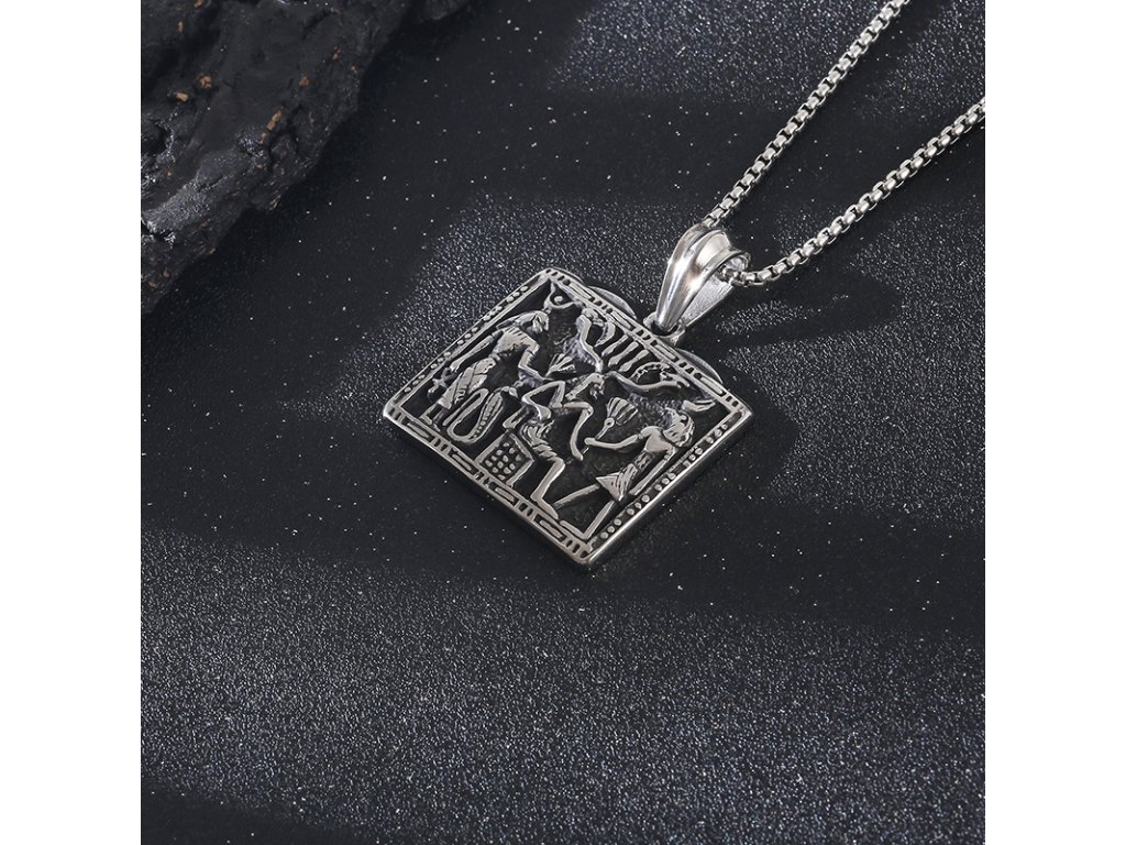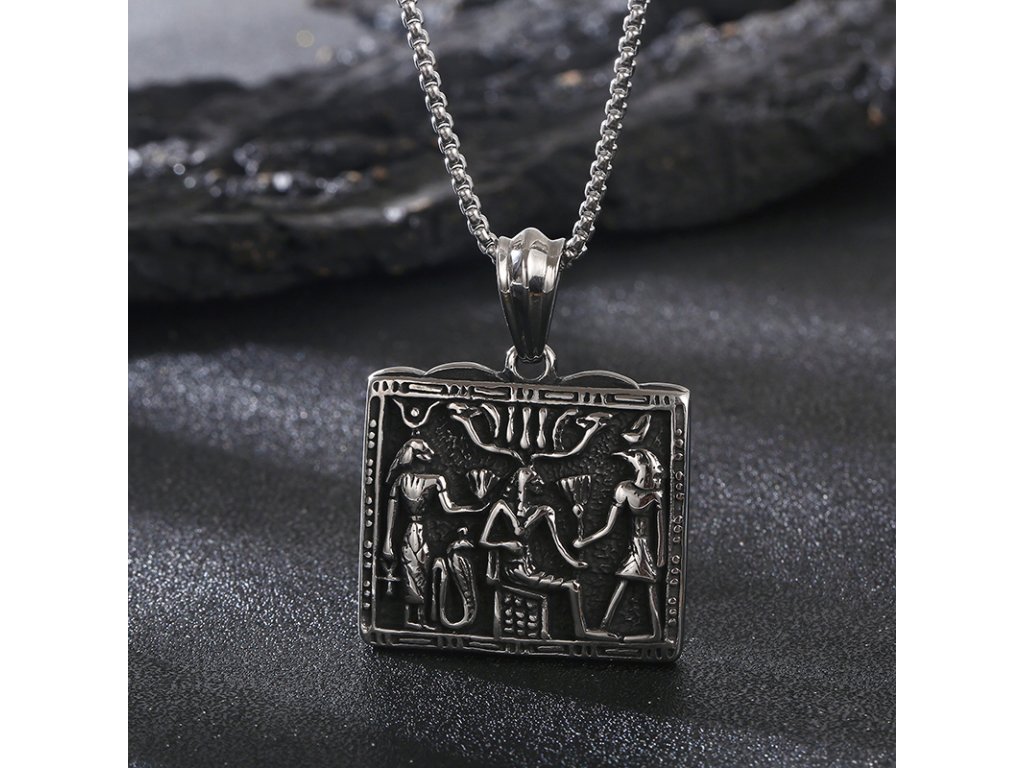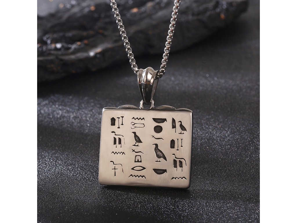 - Pánsky náhrdelník s retiazkou z chirurgickej ocele v dizajne doštičky s egyptskými hieroglyfmi. Originálny design náhrdelníka, kvalitné spracovanie a materiál.
