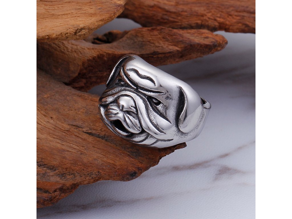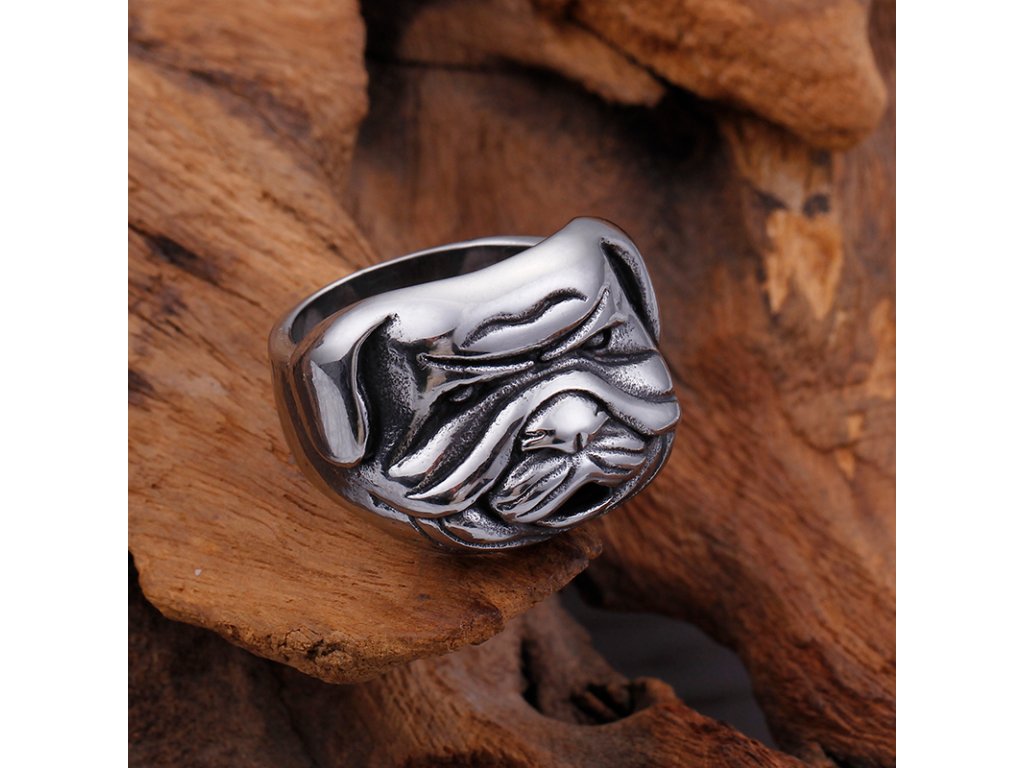 - Pánsky prsteň z chirurgickej ocele v dizajne psa. Originálny design prsteňa, kvalitné spracovanie a materiál.