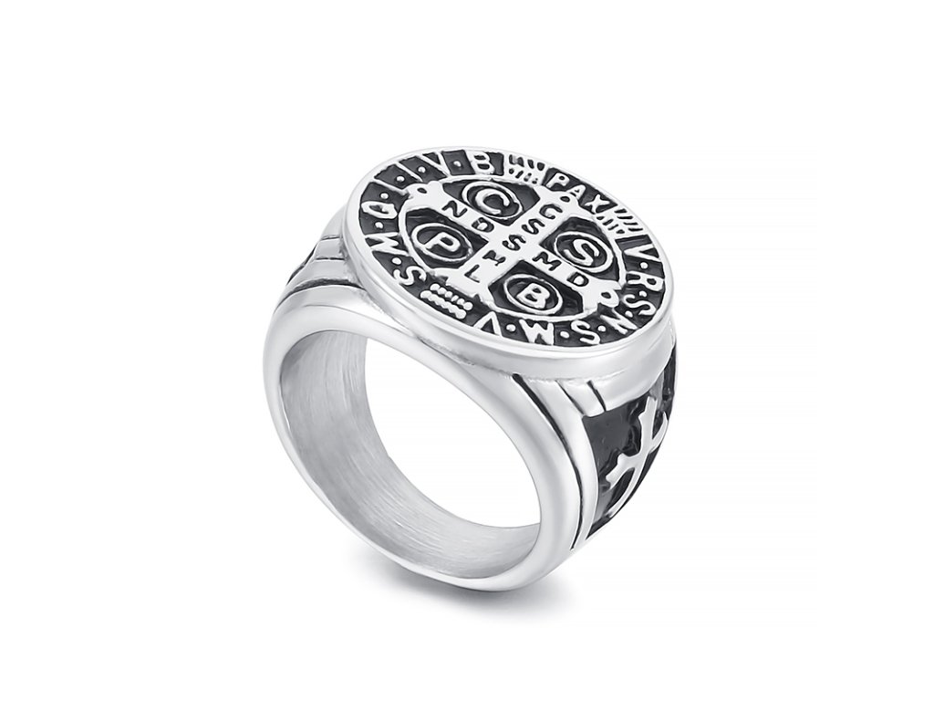 - Pánsky prsteň z chirurgickej ocele s krížom. Originálny design prsteňa, kvalitné spracovanie a materiál.