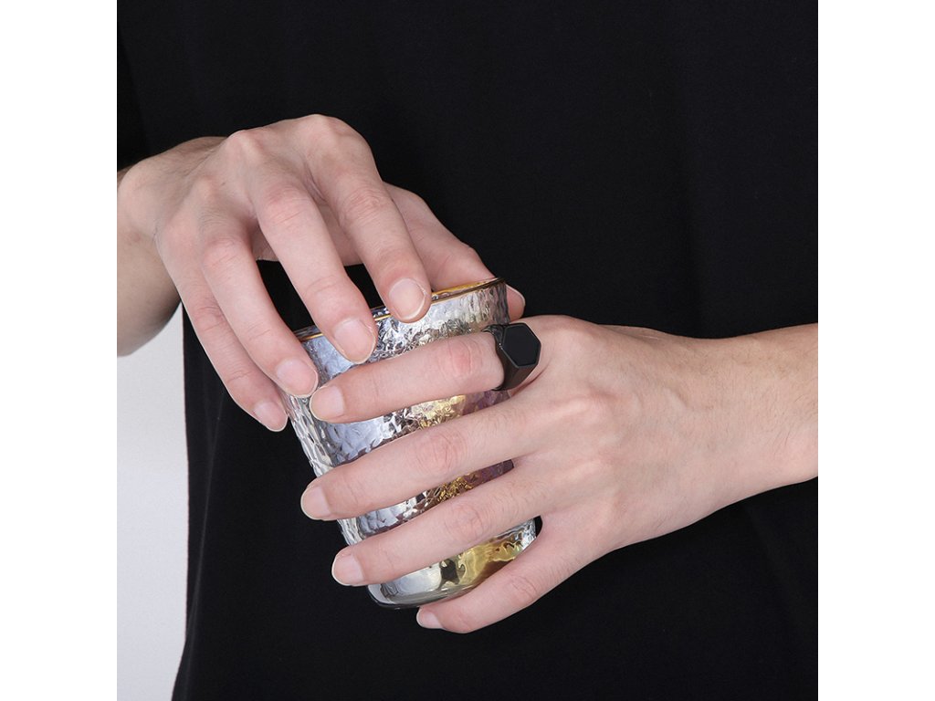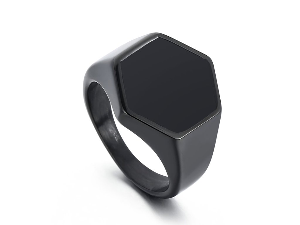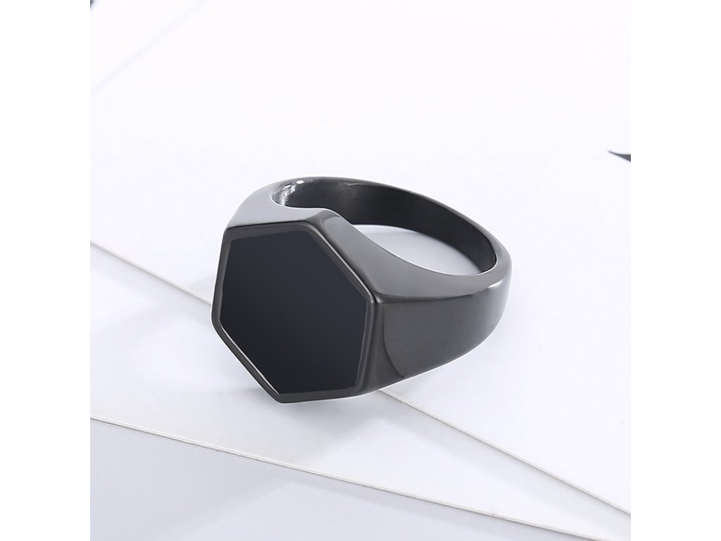 - Pánsky čierny prsteň z chirurgickej ocele s enamelom. Originálny design prsteňa, kvalitné spracovanie a materiál.