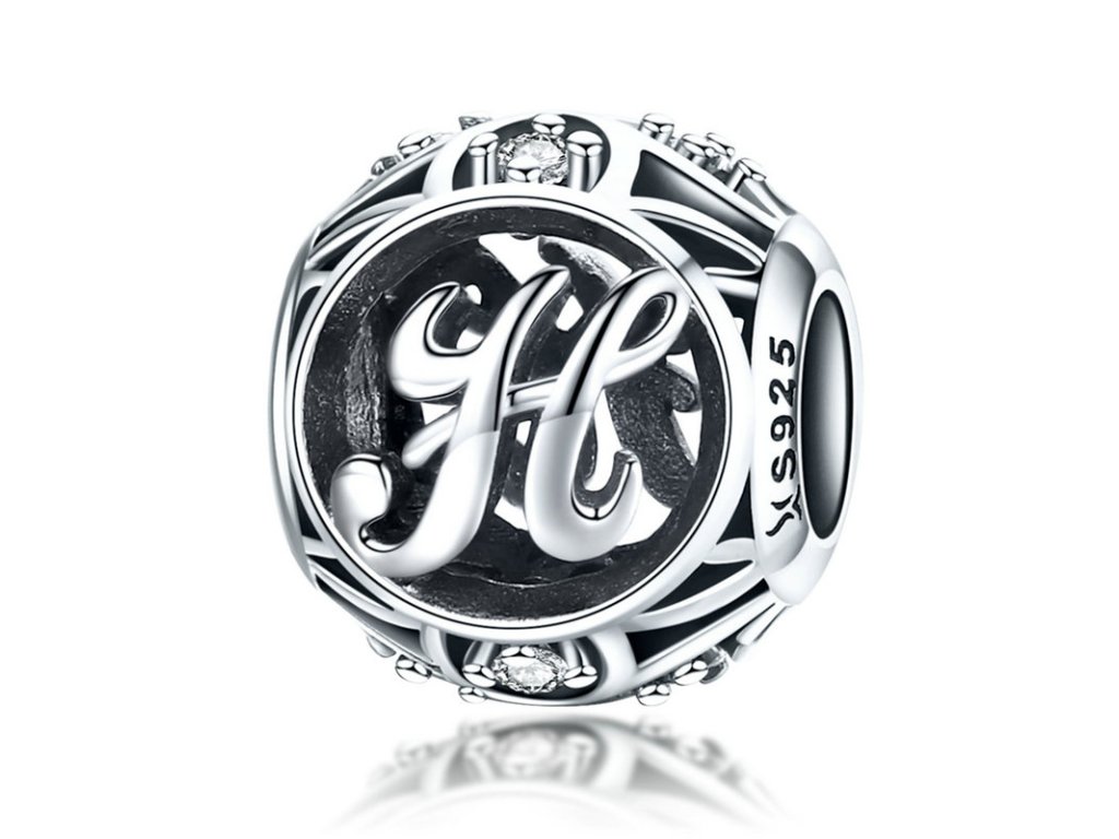 - Luxusný a propracovaný strieborný prívesok v dizajne písmenka "H" zdobený zirkónmi.