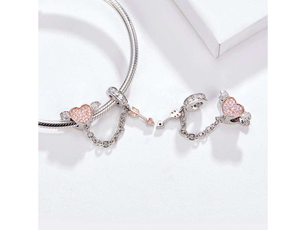 Strieborný prívesok v dizajne Amorov šíp lásky zdobený čírymi trblietavými a svetlo ružovými zirkónmi. Originálny design prívesku, kvalitné spracovanie a materiál, ručne dohotovené.