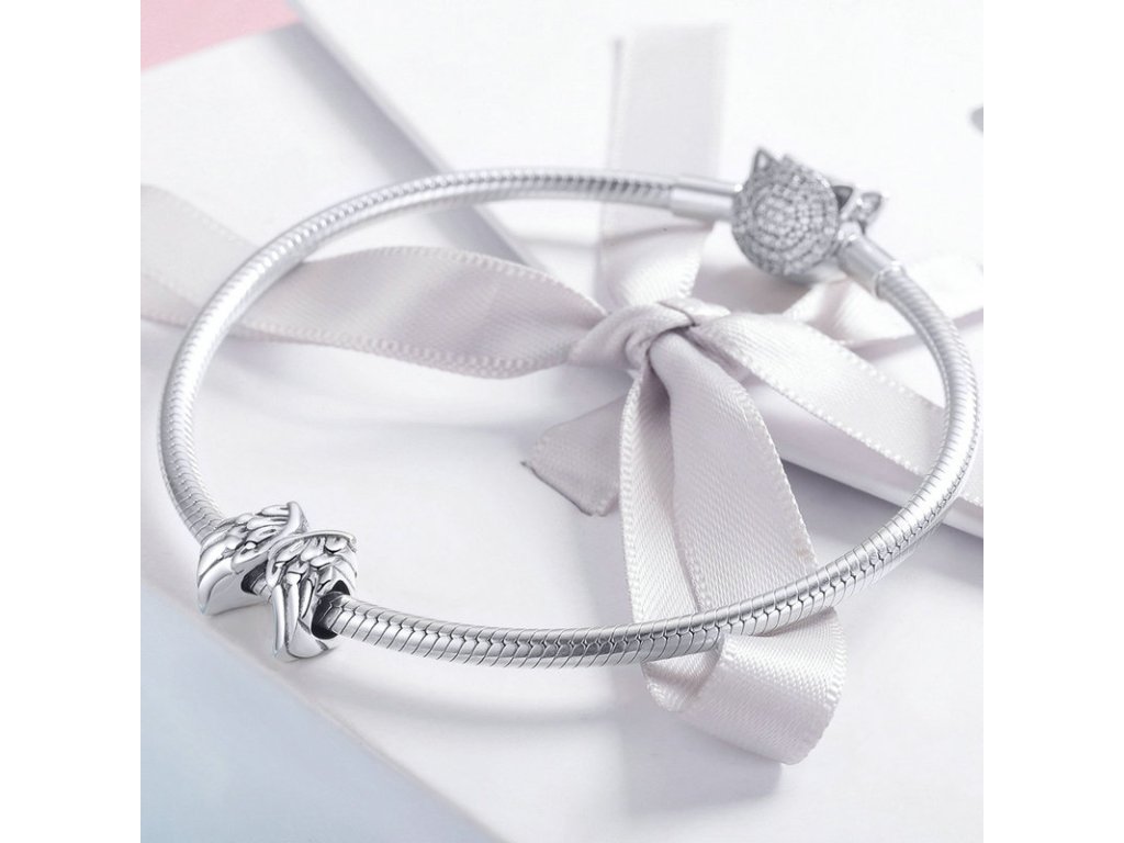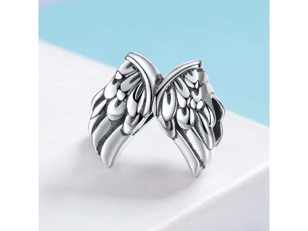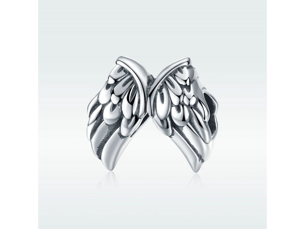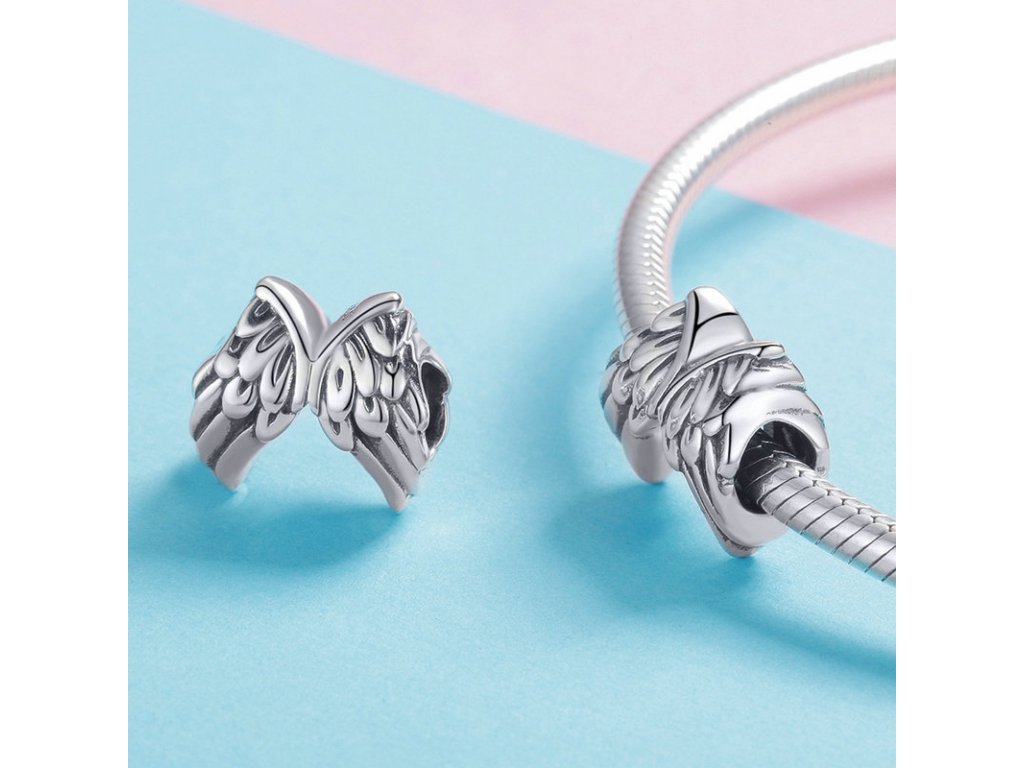 Krásny prepracovaný strieborný smaltovaný prívesok / korálik v tvare anjelských krídiel. Originálny design prívesku, kvalitné spracovanie a materiál, ručne dohotovené. Obdarujte seba alebo svojich blízkych týmto strieborným kúzlom.
