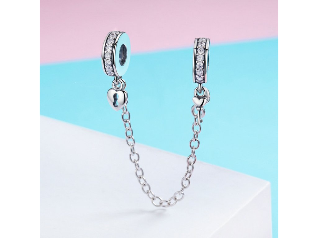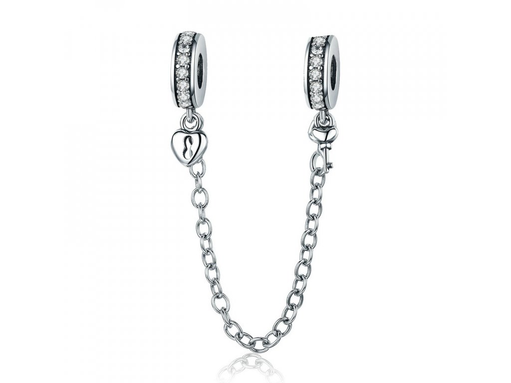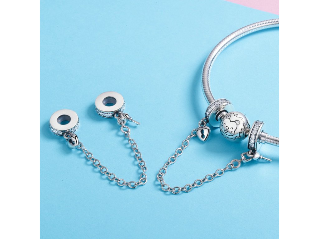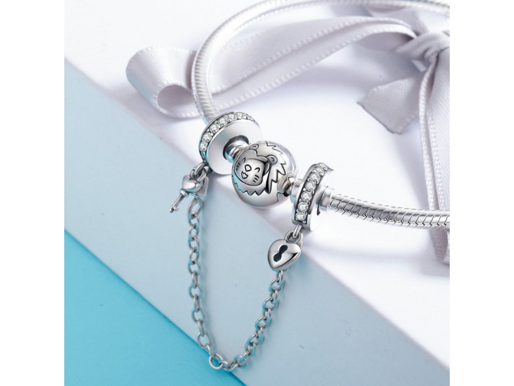 Strieborný prívesok / bezpečnostná retiazka Kľúč k môjmu srdcu zdobený dvoma miniatúrnymi príveskami a čírymi trblietavými zirkónmi. Originálny design prívesku, kvalitné spracovanie a materiál, ručne dohotovené.