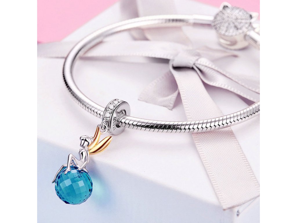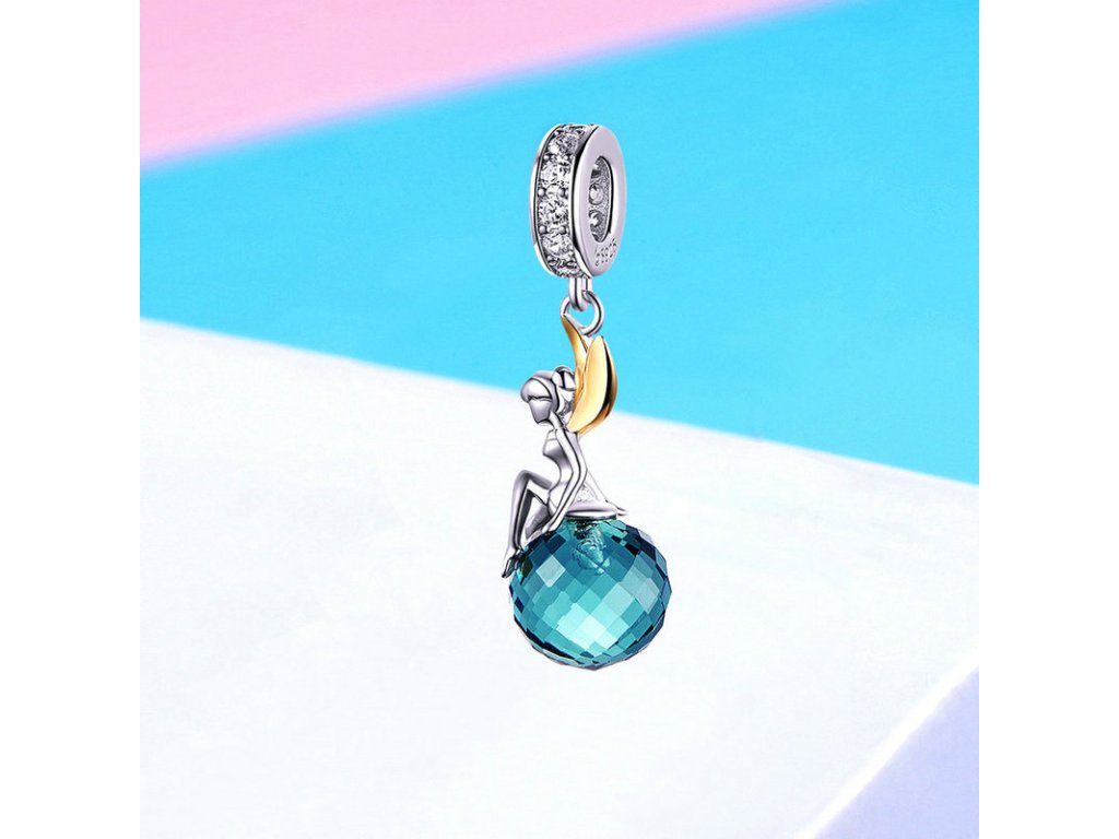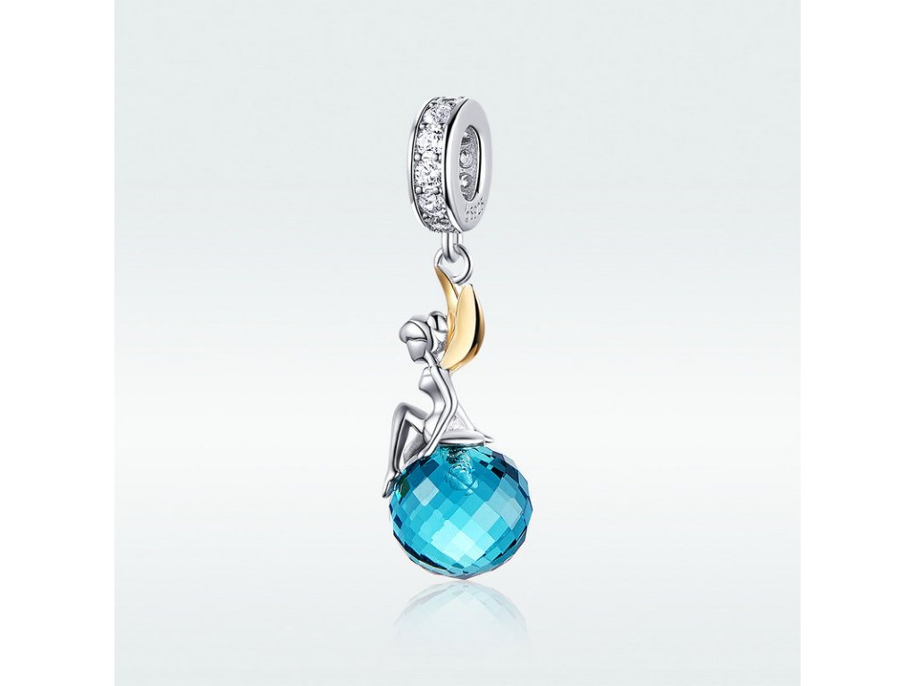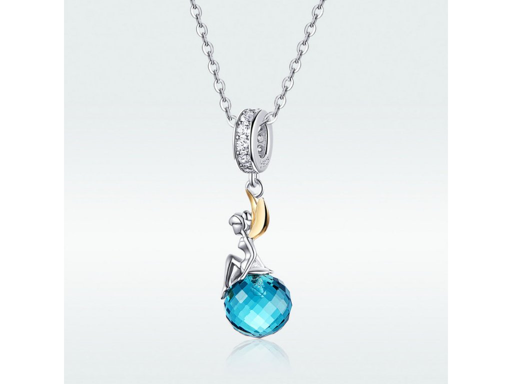Krásny strieborný visiaci prívesok v tvare víly a modrej planéty v podobe modrého brúseného zirkónu. Originálny design prívesku, kvalitné spracovanie a materiál, ručne dohotovené.