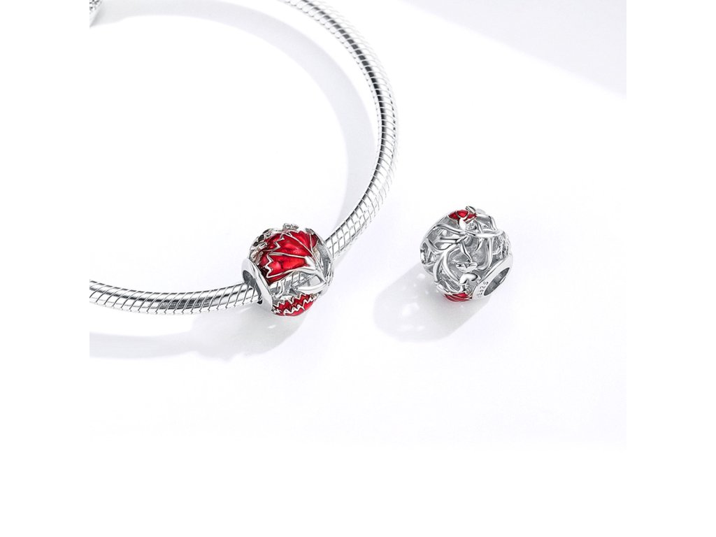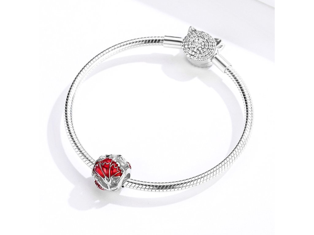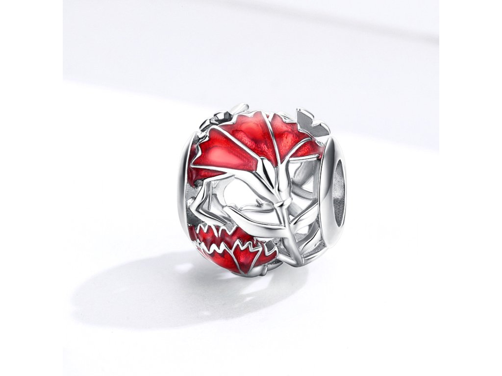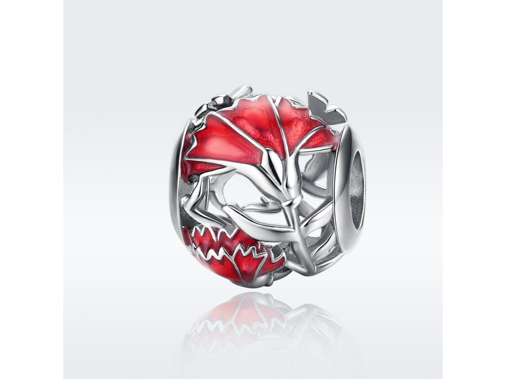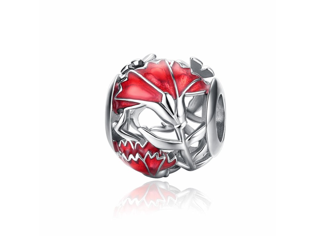 Strieborný prívesok / korálik v dizajne Červeného klinčeka zdobeného motýliky a ručne nanášanou lesklo červenou glazúrou. Originálny design prívesku, kvalitné spracovanie a materiál, ručne dohotovené.