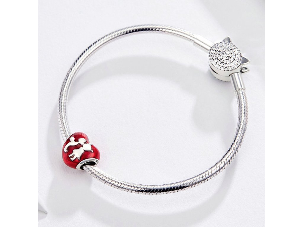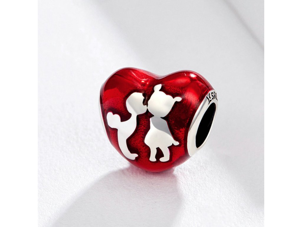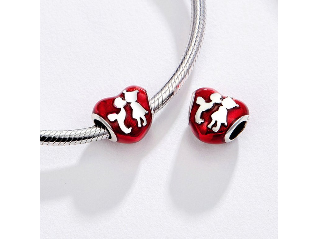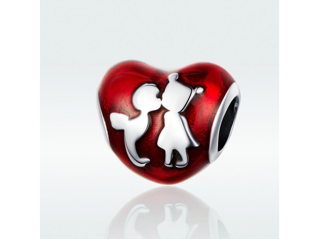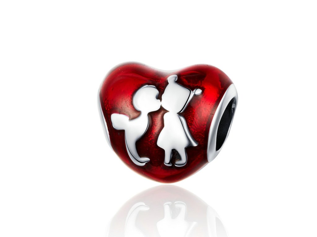 Strieborný prívesok v dizajne Detskej sladkej lásky v podobe srdca zdobeného ručne nanášanou červenou glazúrou. Originálny design prívesku, kvalitné spracovanie a materiál, ručne dohotovené.
