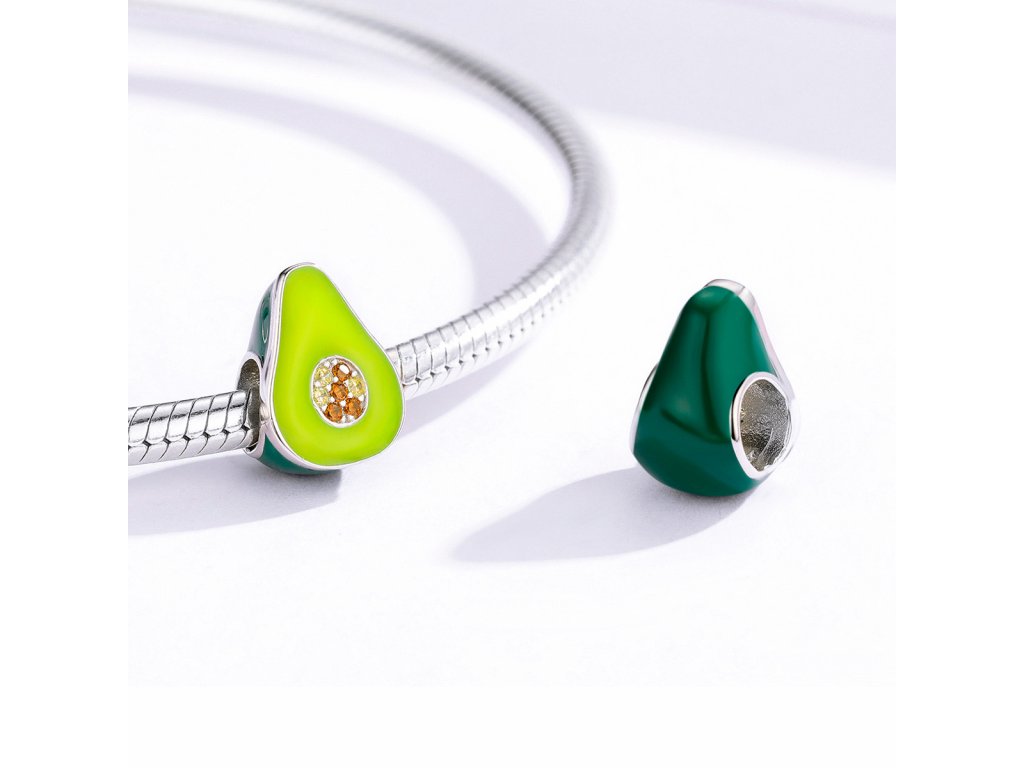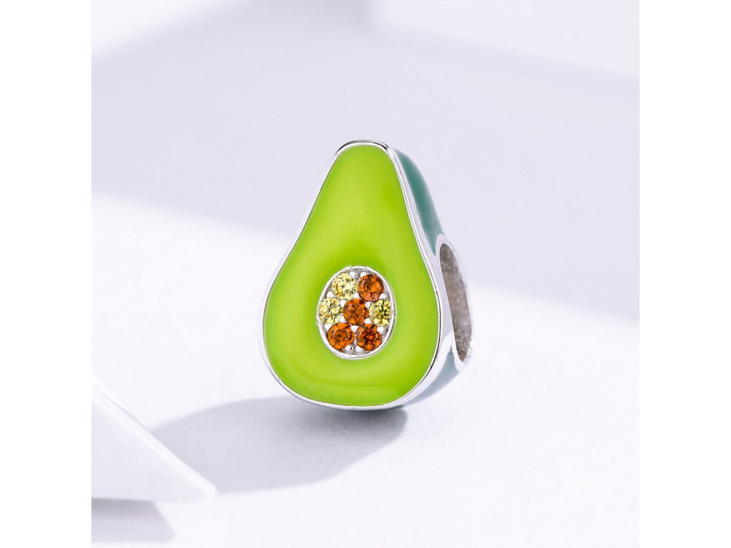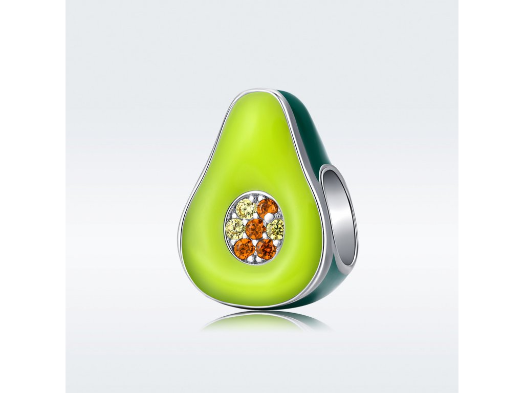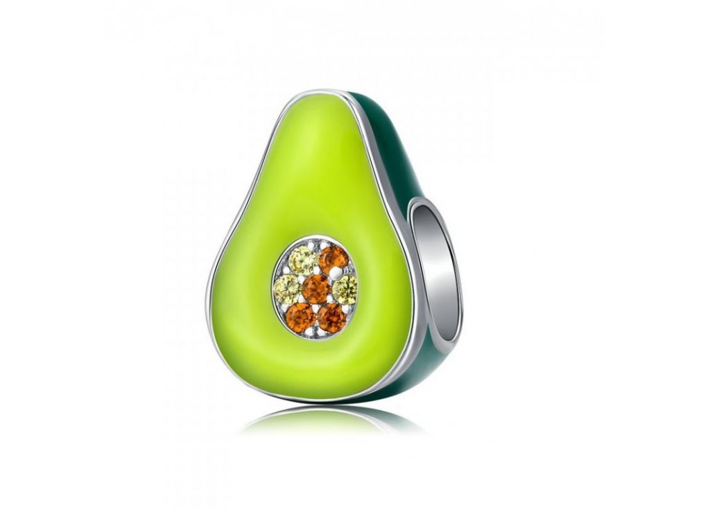 - Strieborný prívesok v dizajne exotického ovocia v podobe avokáda zdobeného trblietavými farebnými zirkónmi a ručne nanášanou zelenou glazúrou. Originálny design prívesku, kvalitné spracovanie a materiál, ručne dohotovené.