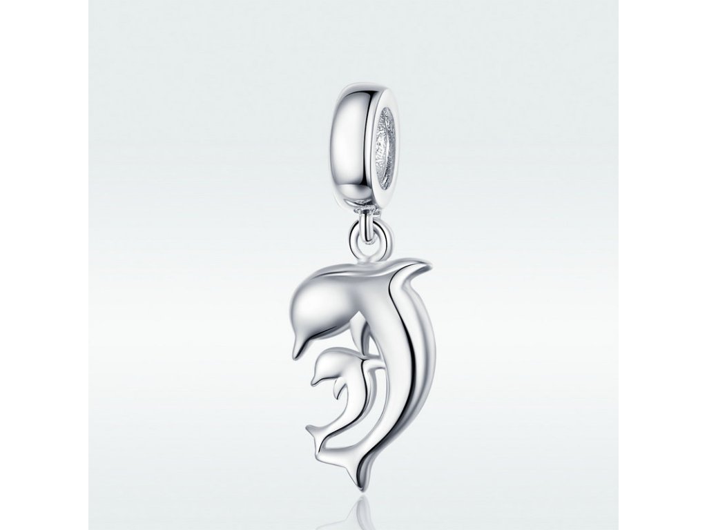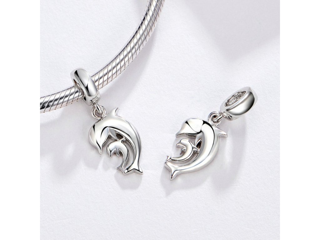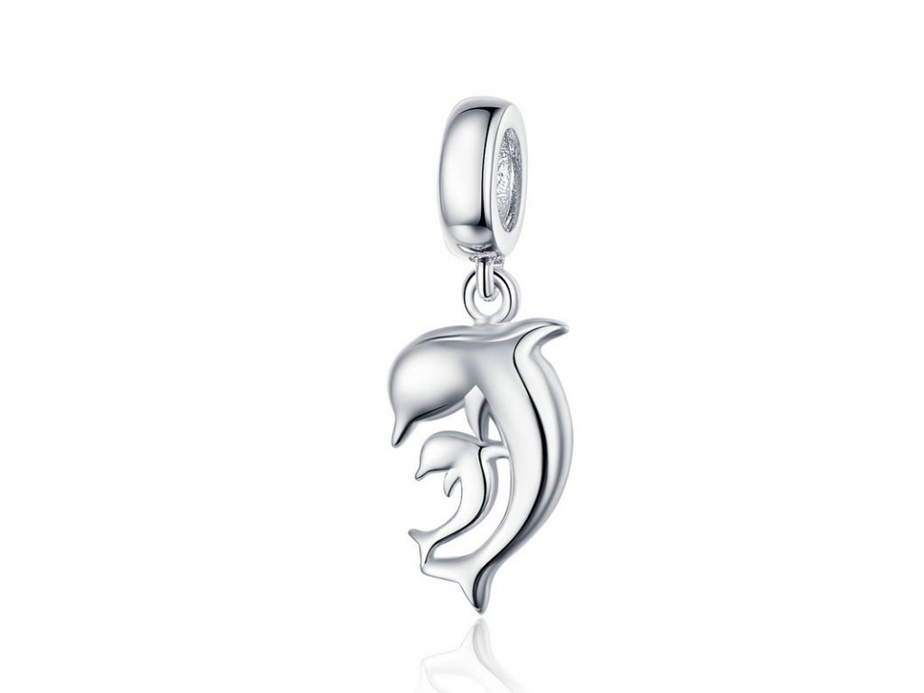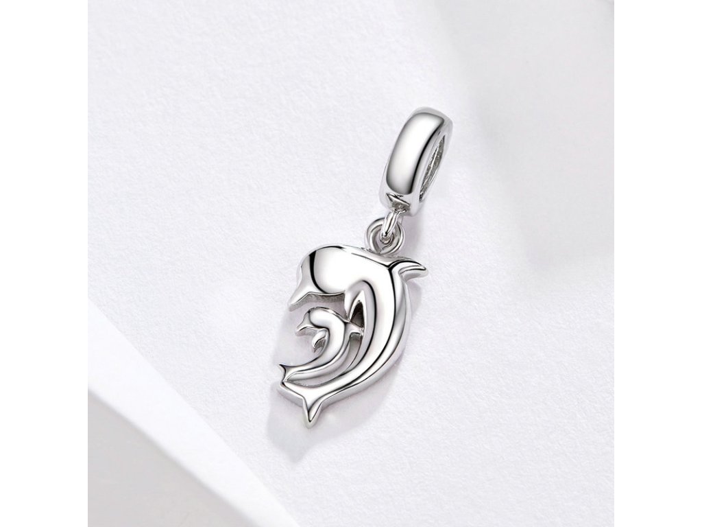 Strieborný visiaci prívesok v dizajne Hravých delfínov. Originálny design prívesku, kvalitné spracovanie a materiál, ručne dohotovené.