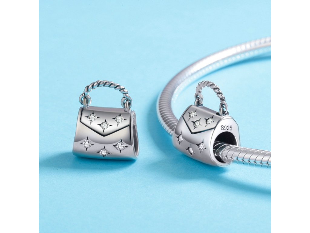 Prívesok v dizajne krásnej kabelky zdobený trblietavými zirkónmi. Striebro 925/1000. Prívesky sú plne kompatibilné aj s náramkami iných značiek. DODÁVAME BALENÉ V DARČEKOVEJ KRABIČKE - ZADARMO !*