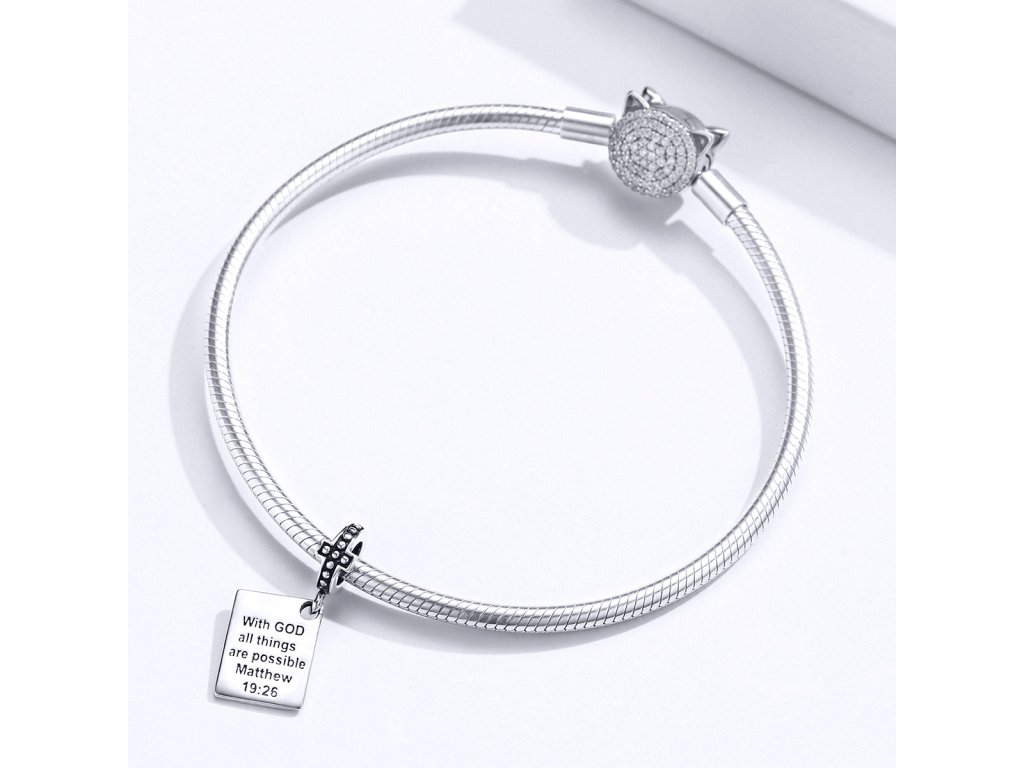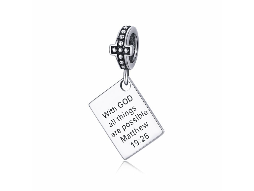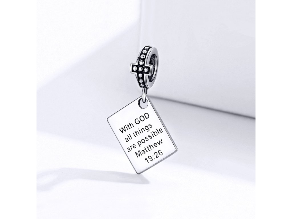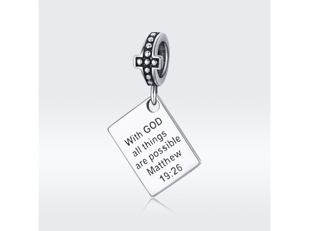 - Strieborný visiaci motivačný prívesok v dizajne Kresťanskej biblie zdobený smaltovaným krížikom a anglickým nápisom "With GOD all things are possible" v preklade "S Bohom je možné všetko". Originálny design prívesku, kvalitné spracovanie a materiál, ručne dohotovené.