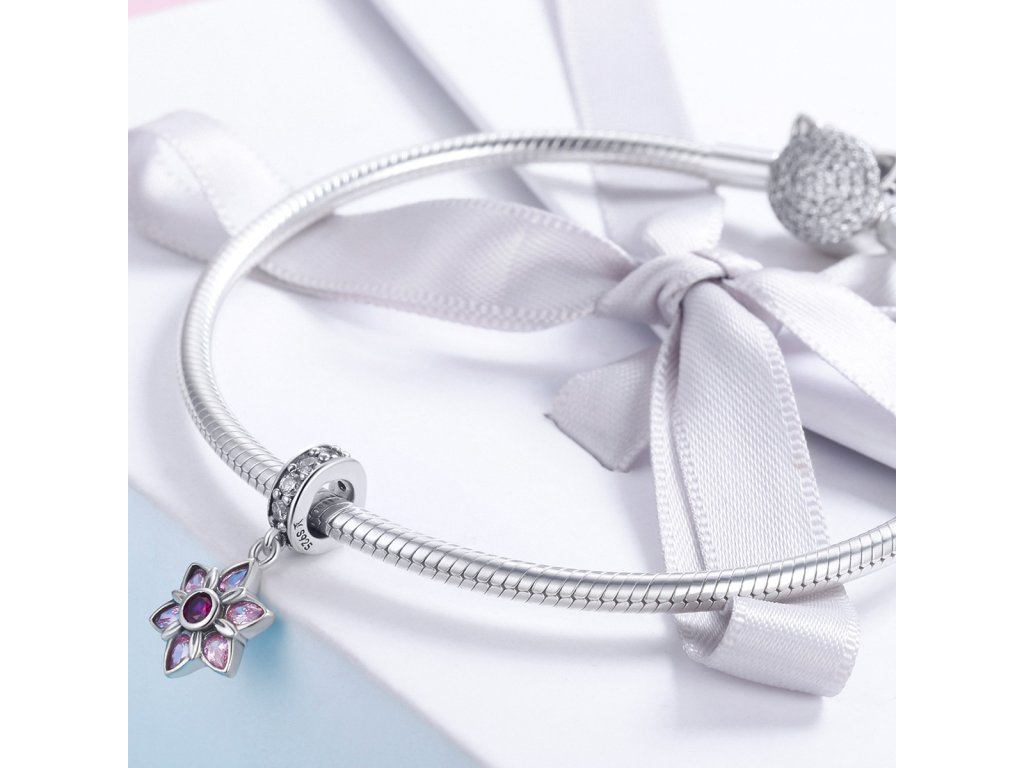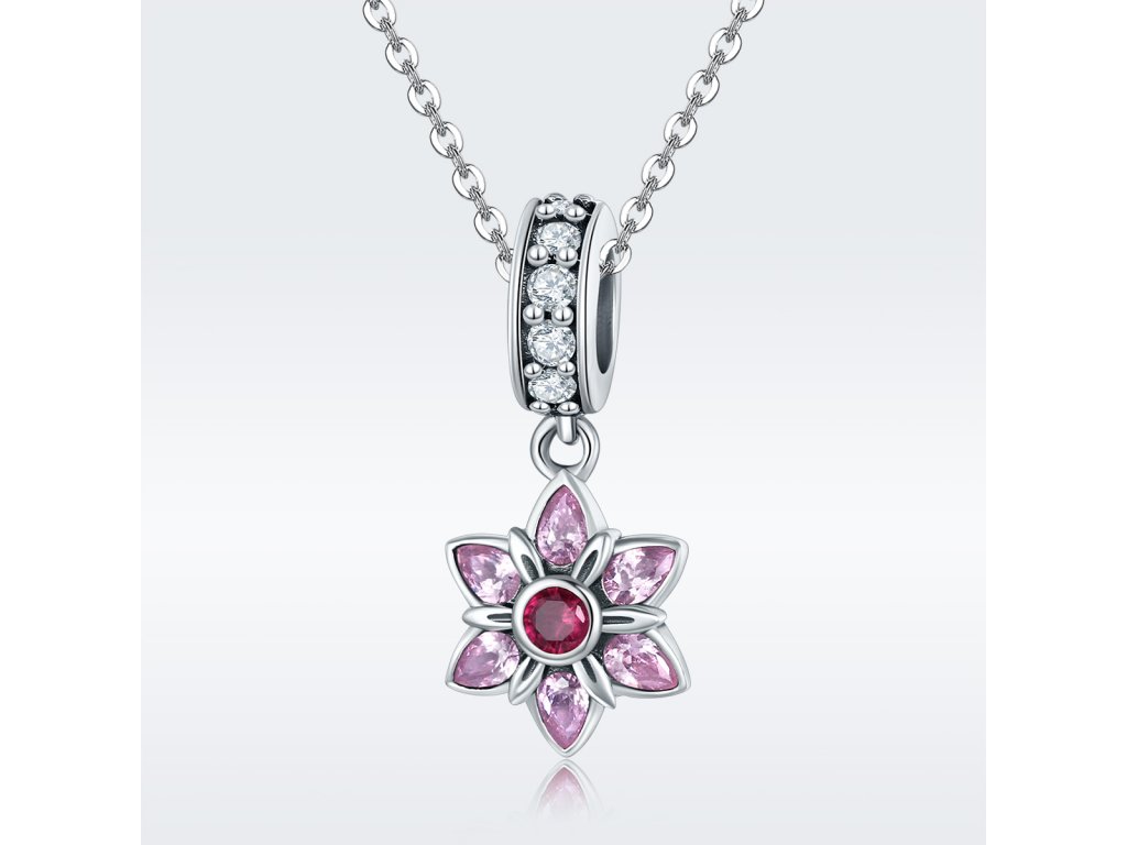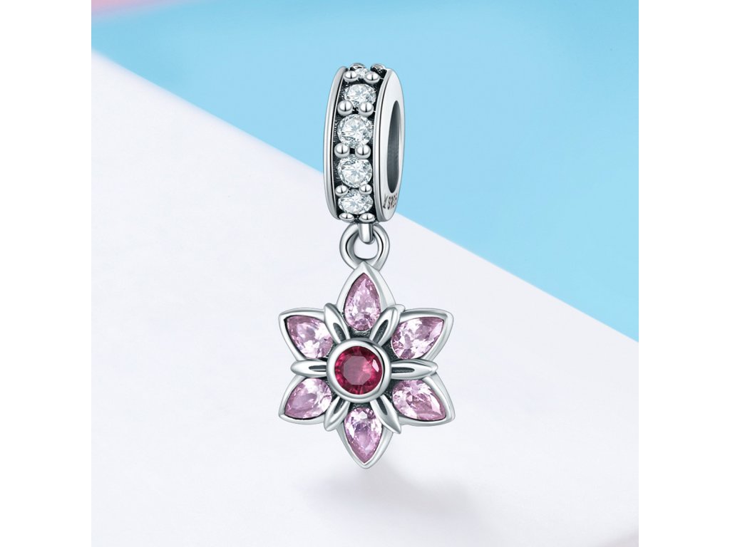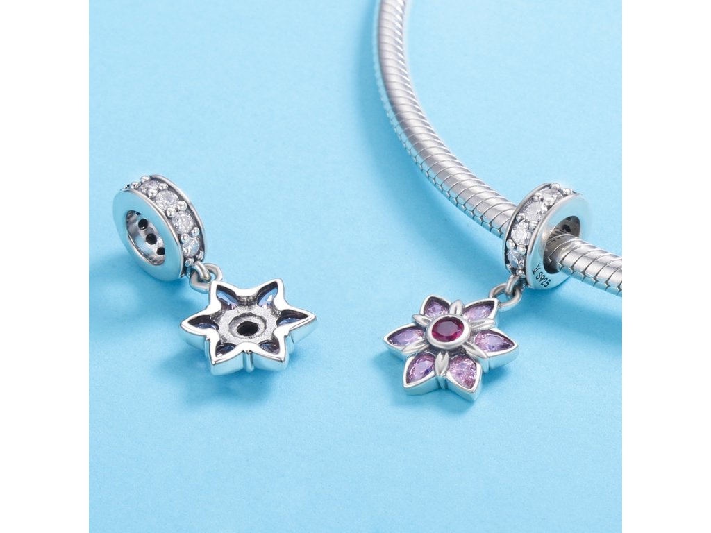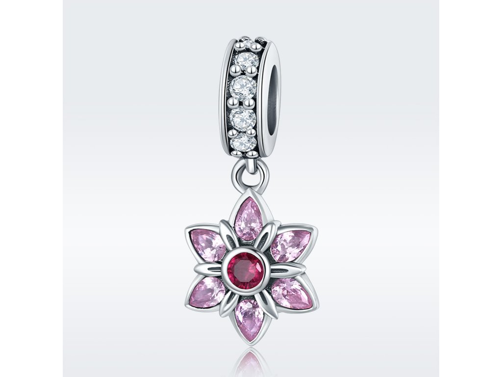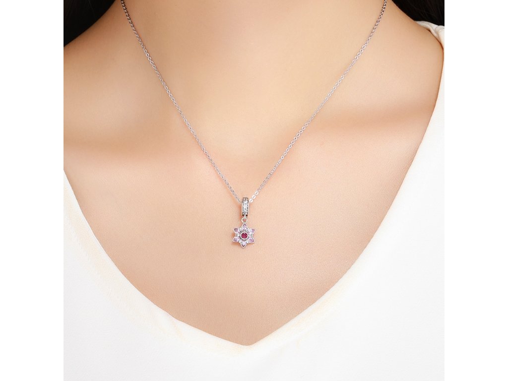 Luxusný a prepracovaný strieborný visiaci prívesok v dizajne kryštalického kvetu zdobený zirkónmi.