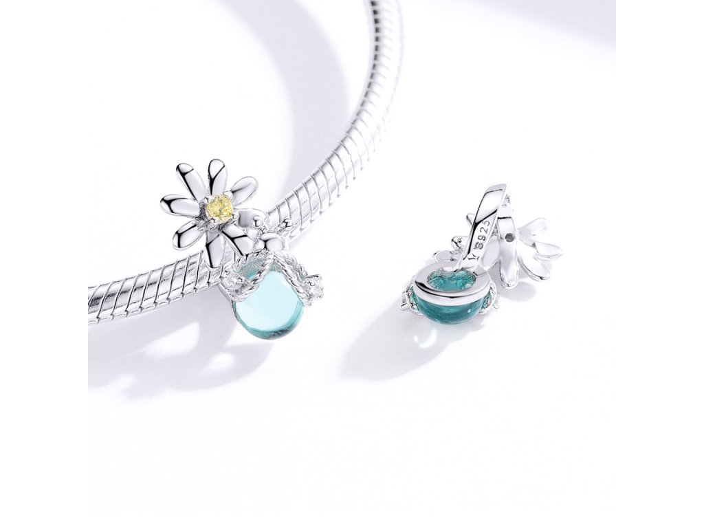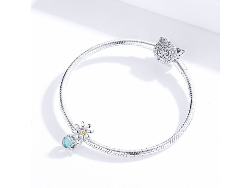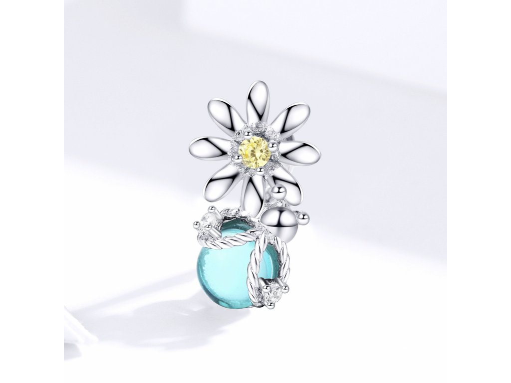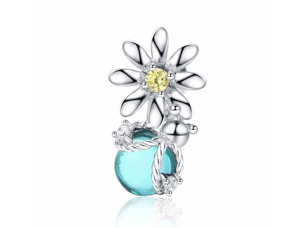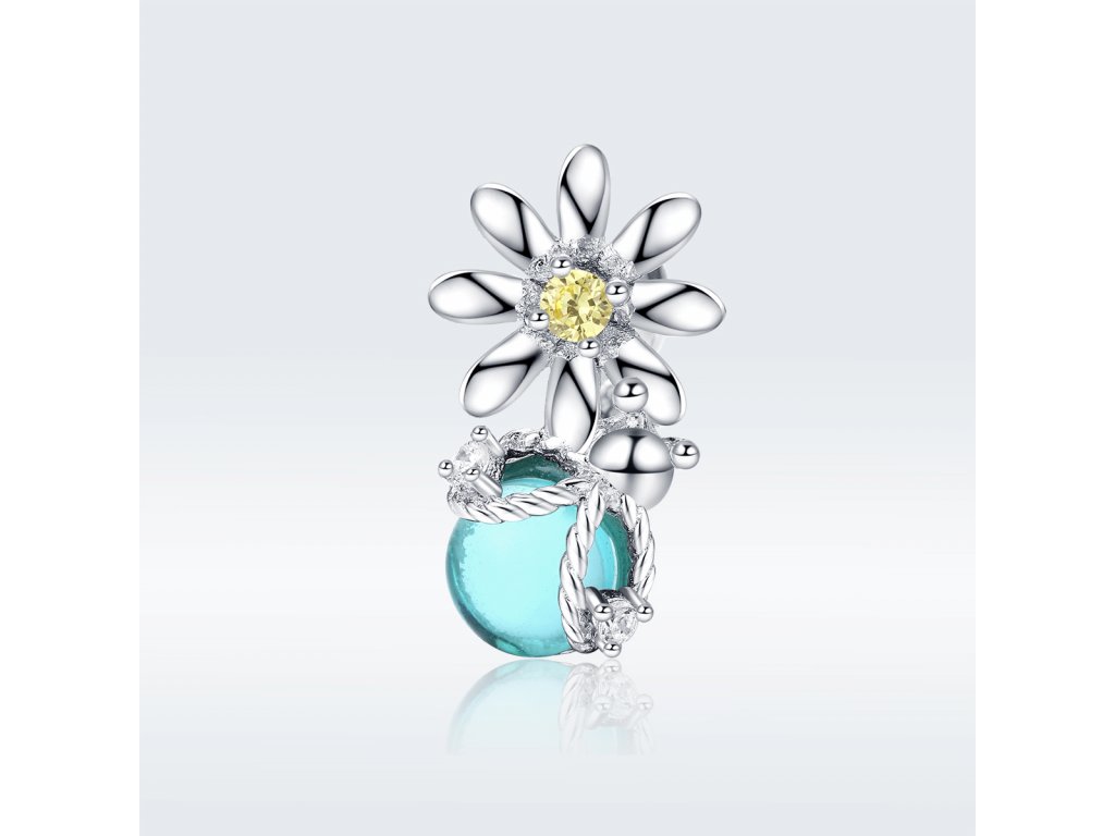 - Strieborný prívesok v dizajne Kúzelné sedmokrásky zdobené tyrkysovou krištáľovou guľou a trblietavými zirkónmi. Originálny design prívesku, kvalitné spracovanie a materiál, ručne dohotovené.