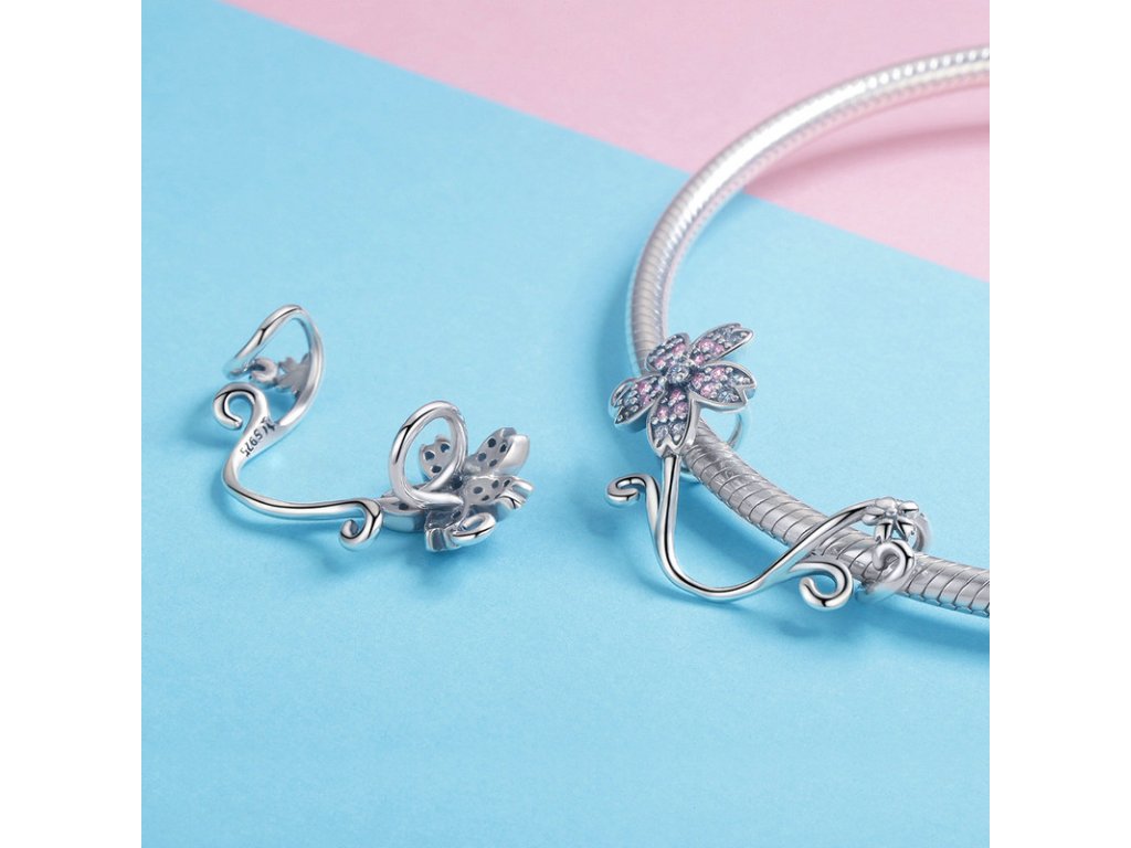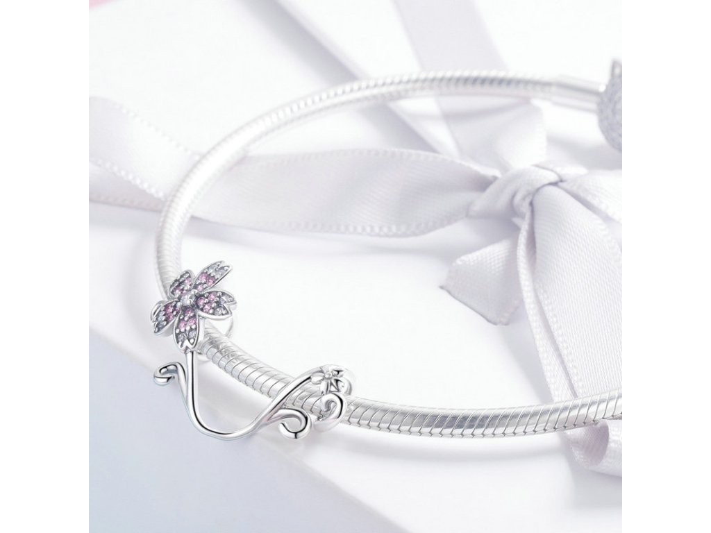 Luxusný strieborný prívesok v podobe kvitnúcej jemnej sakury s ružovými a čírymi zirkónmi. Originálny design prívesku, kvalitné spracovanie a materiál, ručne dohotovené.
