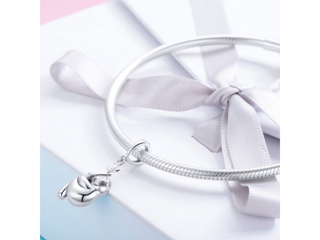 Luxusný a prepracovaný visiaci strieborný prívesok v dizajne leňochoda.