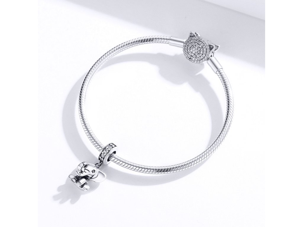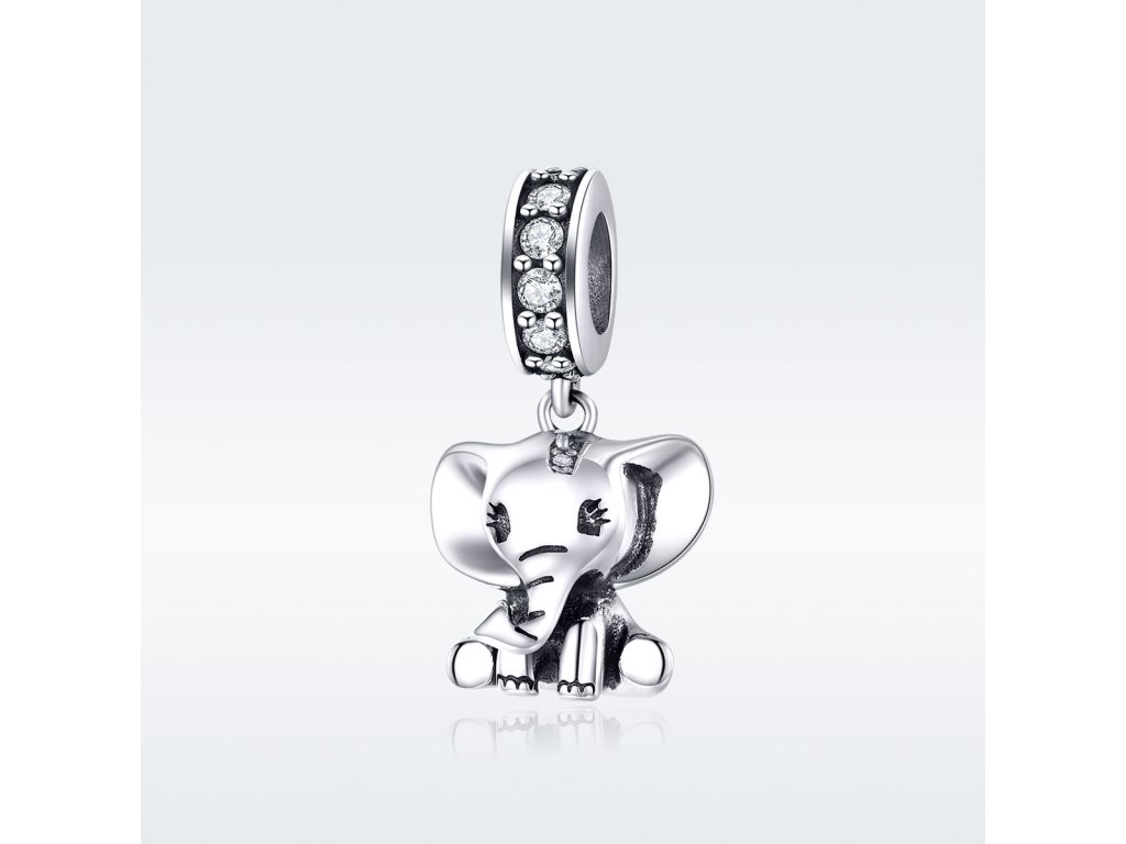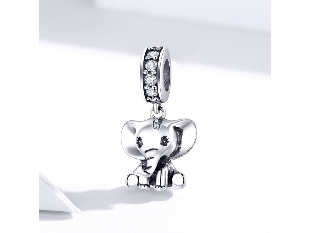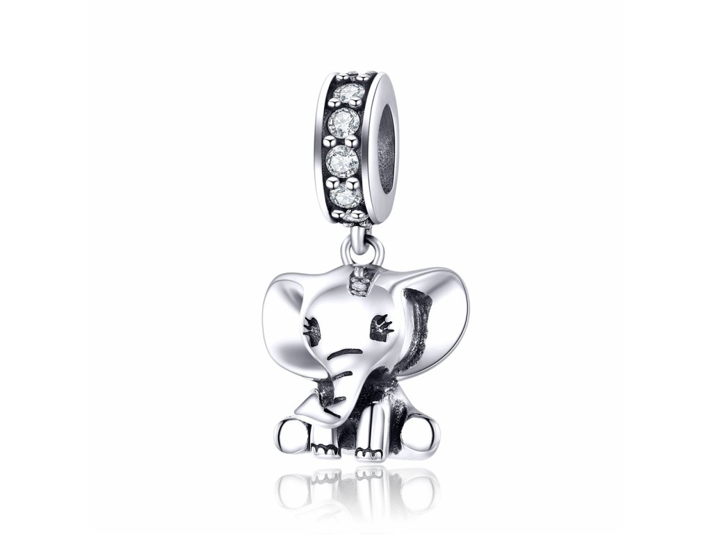 - Strieborný visiaci prívesok v dizajne Malého sloníka pre šťastie zdobený smaltom a čírymi trblietavými zirkónmi. Originálny design prívesku, kvalitné spracovanie a materiál, ručne dohotovené.