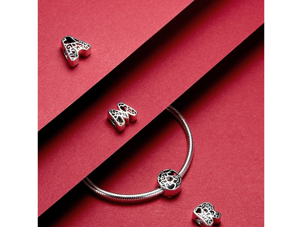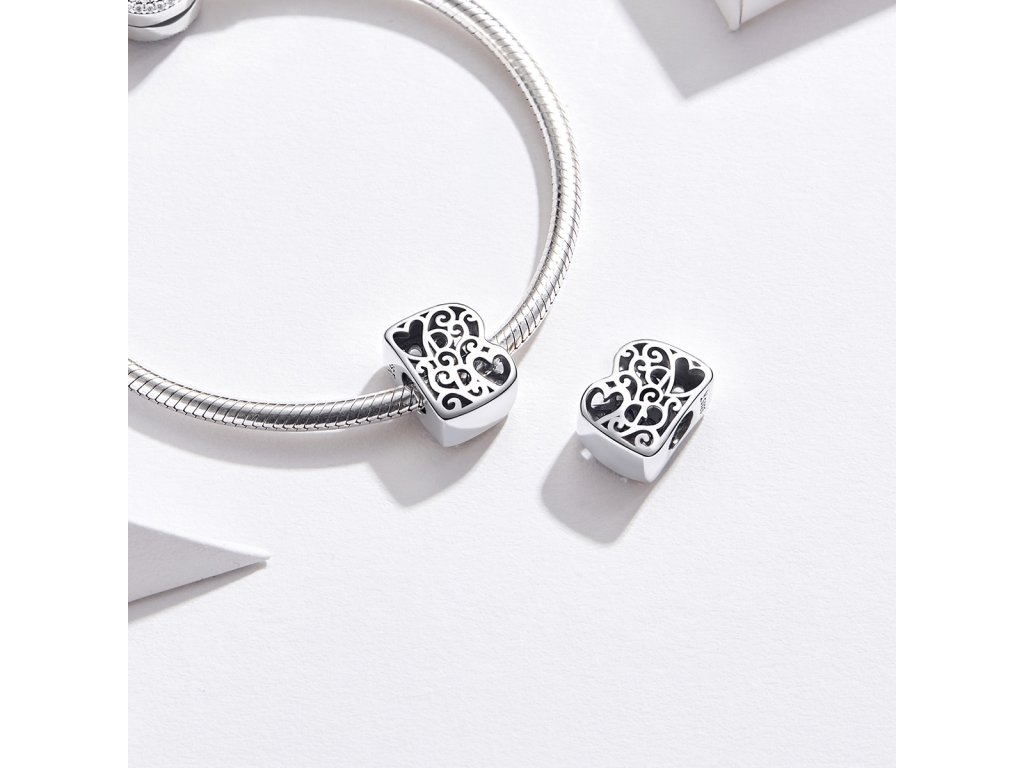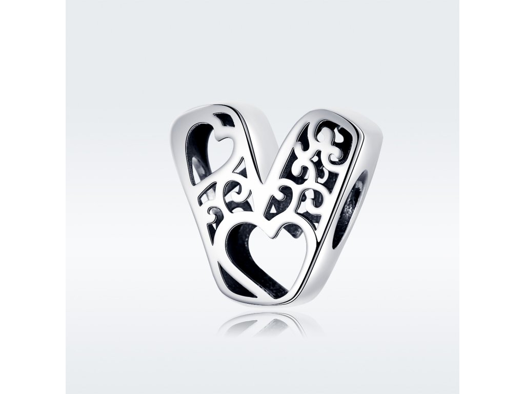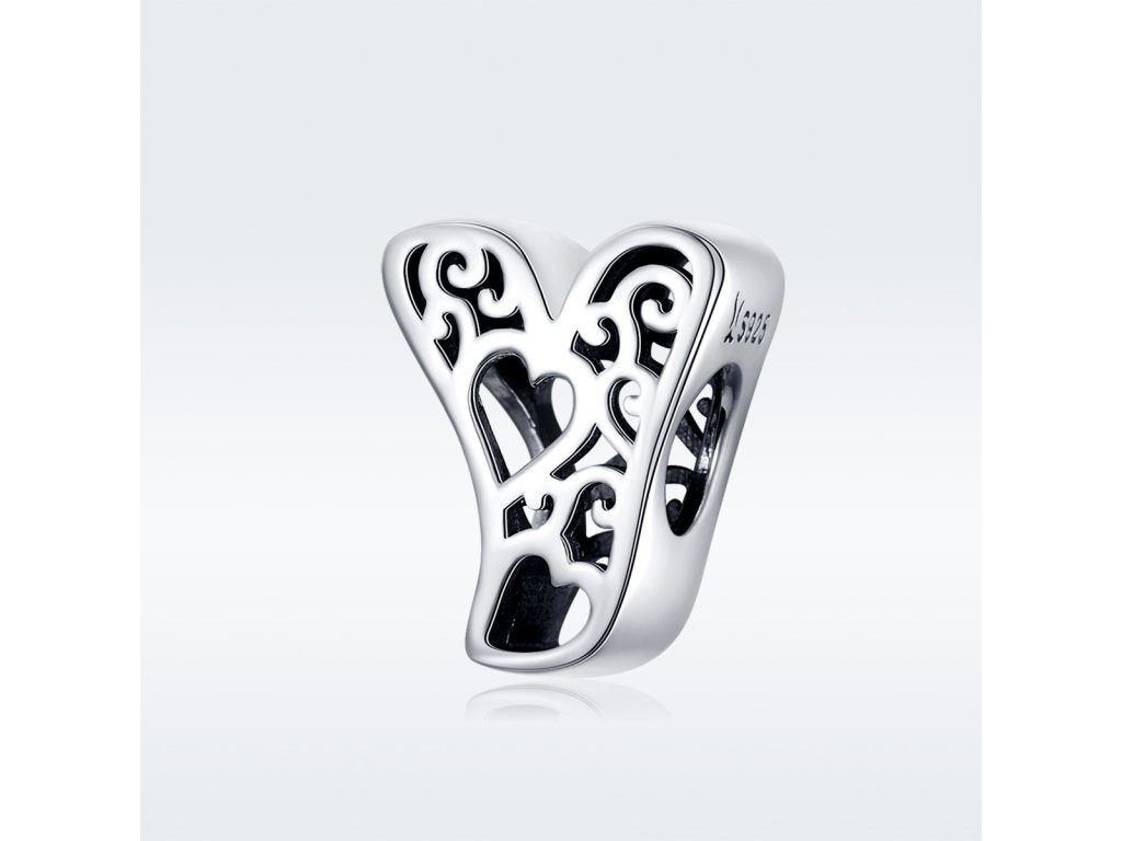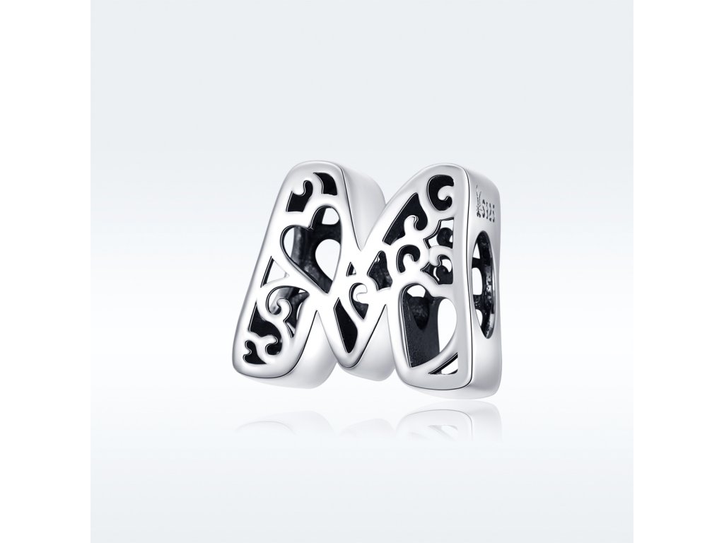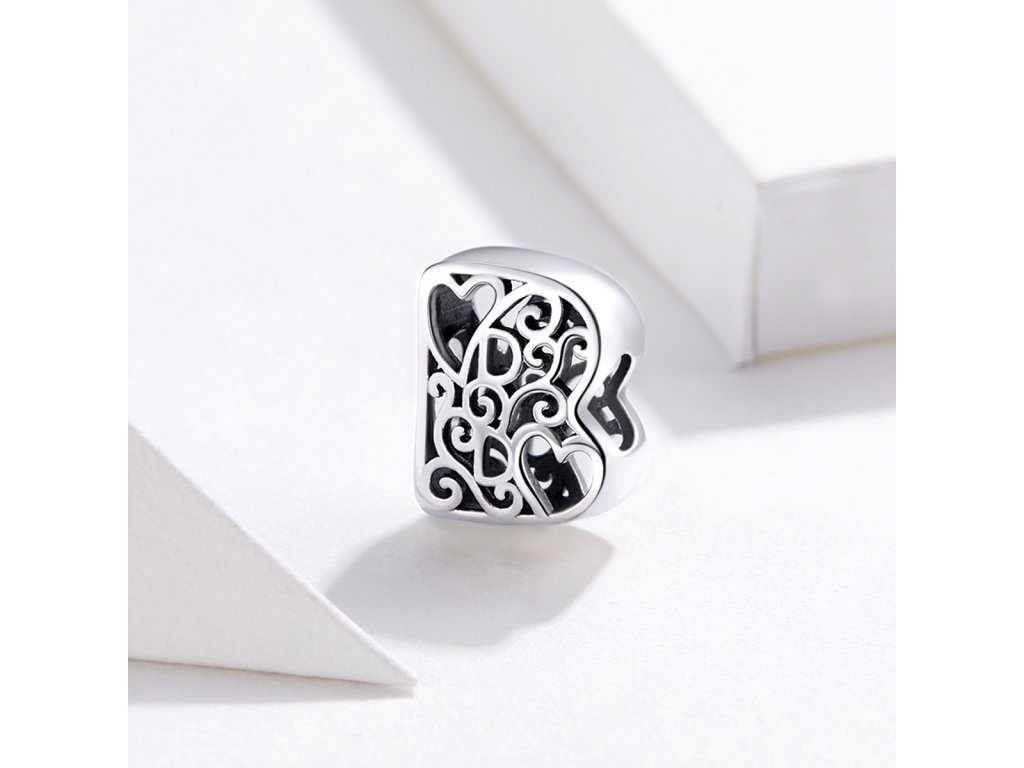 Strieborný prívesok v dizajne Milovaného filigránového písmenka zdobeného vyrezávanými srdiečkami. Originálny design prívesku, kvalitné spracovanie a materiál, ručne dohotovené.