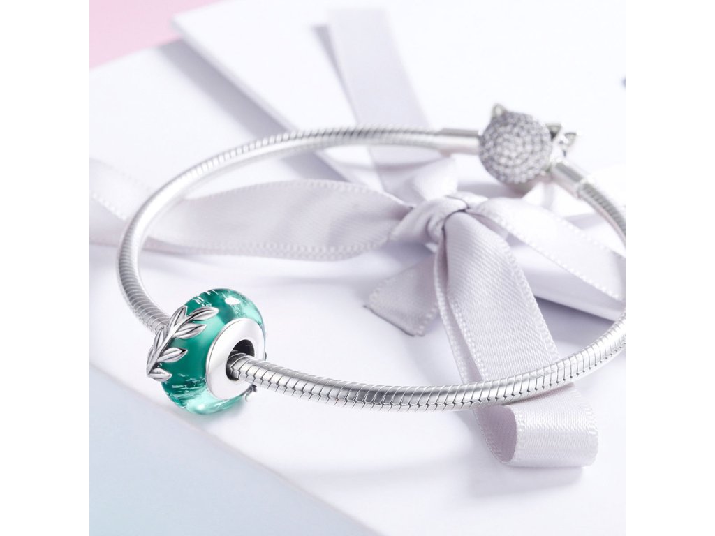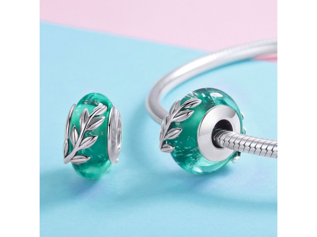 Krásny strieborný prívesok / korálik Murano Kúzlo prírody. Originálny design prívesku, kvalitné spracovanie a materiál, ručne dohotovené.
